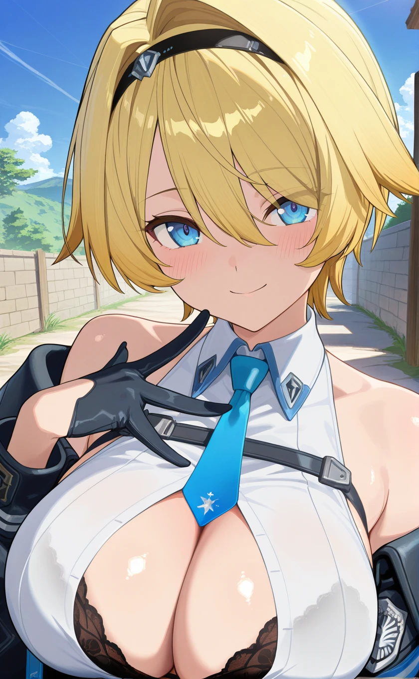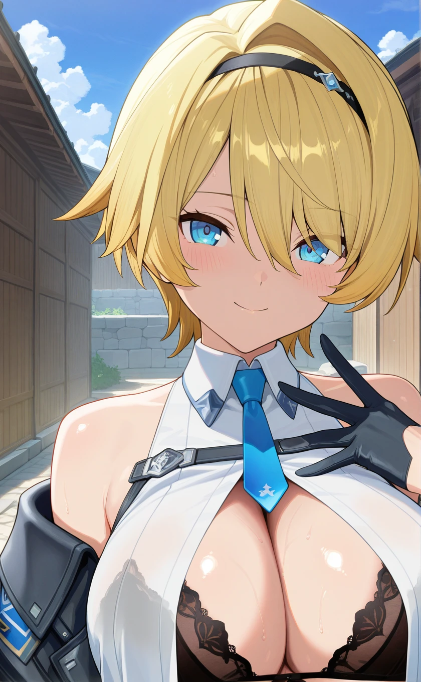 hairband,short hair,blonde hair,blue eyes