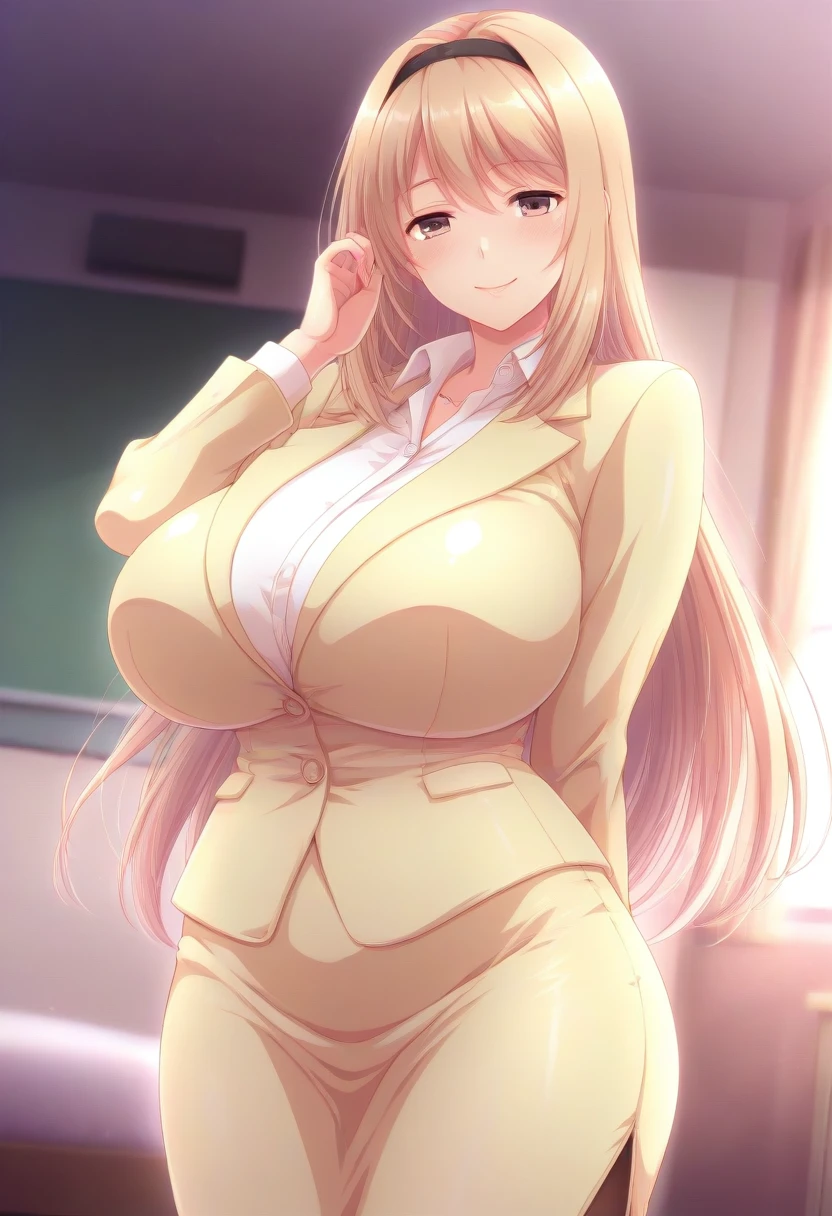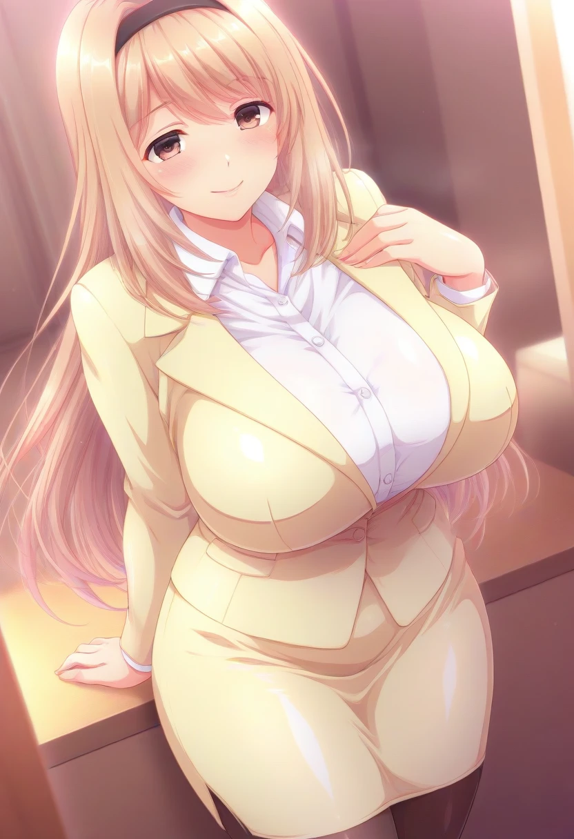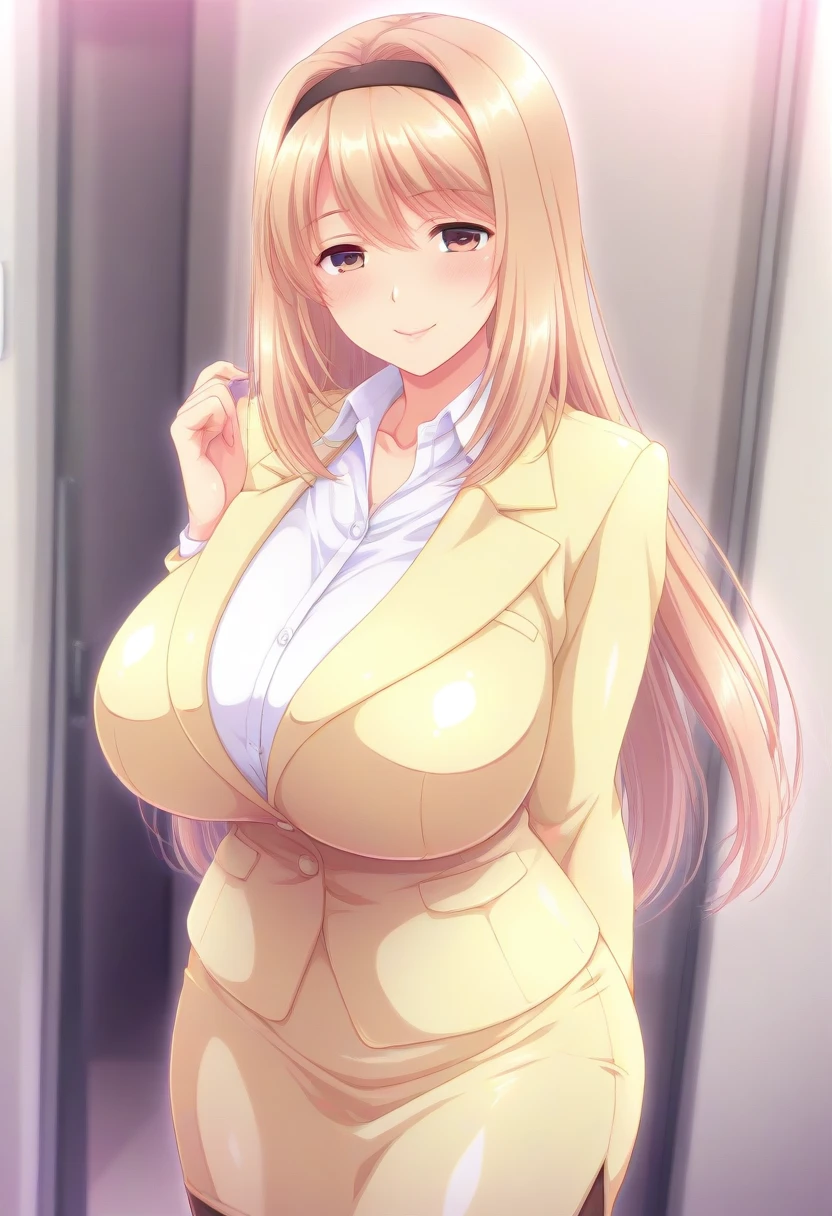 Recommend Prompt:Ayumi Kasugai, hazel eyes, blonde hair, long hair, hairband,