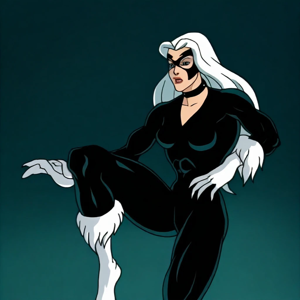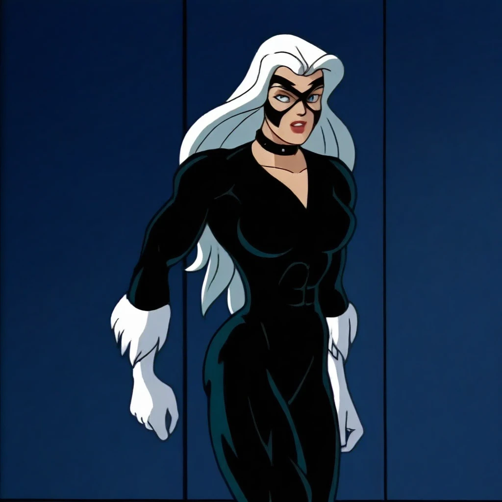 felicia hardy, long white hair, blue eyes, big breasts, athletic curvy toned sexy body, domino mask, choker,Slim, extraordinary beautiful woman, attractive woman,