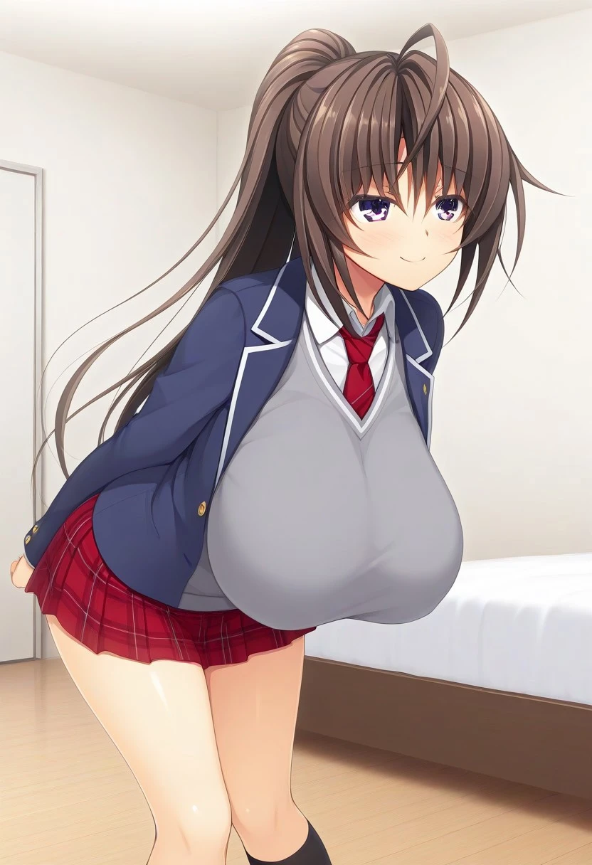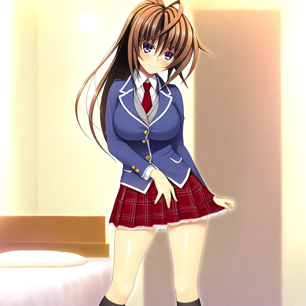 Recommend Prompt:Suzuka Ashiya, purple eyes, brown hair, long hair, ponytail, ahoge,