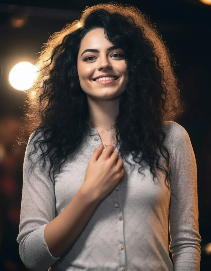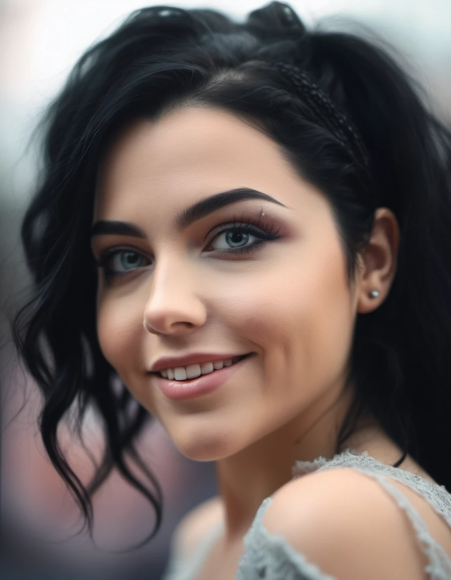 Despite all the training images showing her classic black hair, if you don't prompt for it, SD will give you more exotic hair colors. Please prompt for black hair as needed.