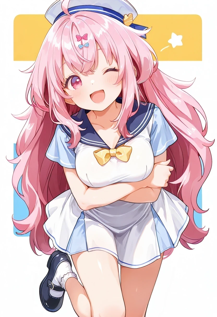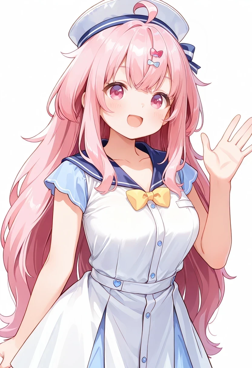 blue sailor collar,yellow bowtie,blue sleeves,short sleeves,white dress,Casual: