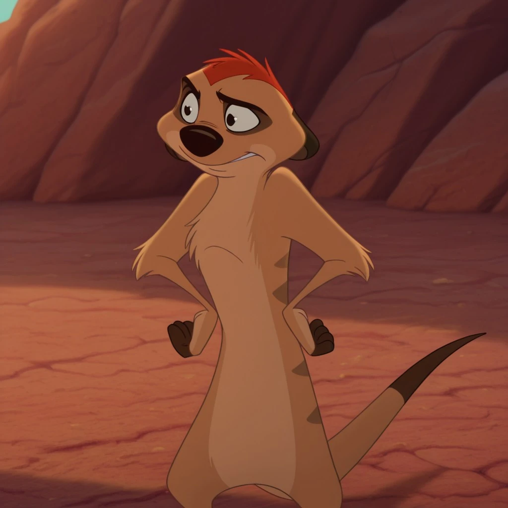 feral, <Timon>, male, meerkat, light-brown fur, red hair, black eyes