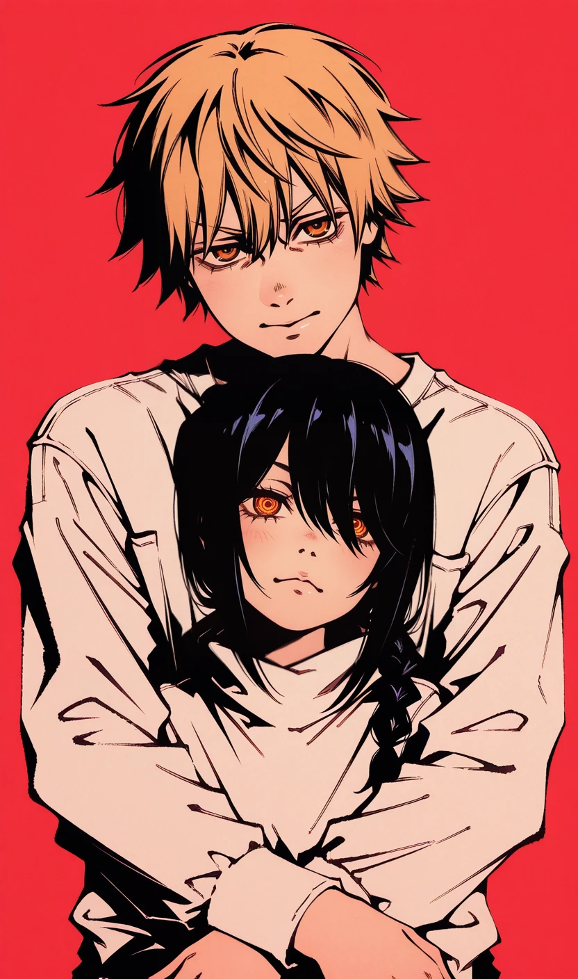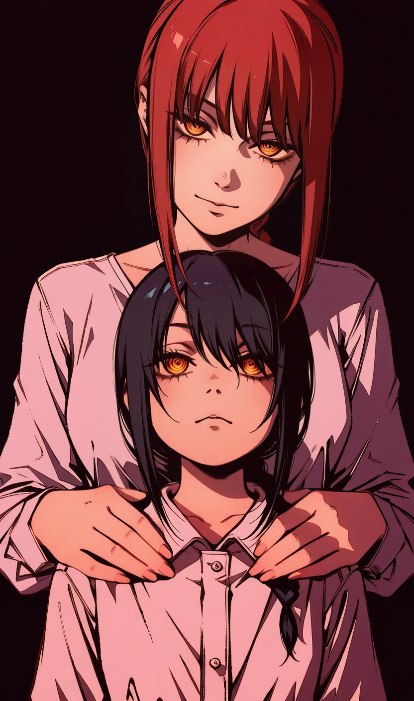 nayuta \(chainsaw man\), black hair, braided ponytail, ringed eyes, yellow eyes, turtleneck sweater,