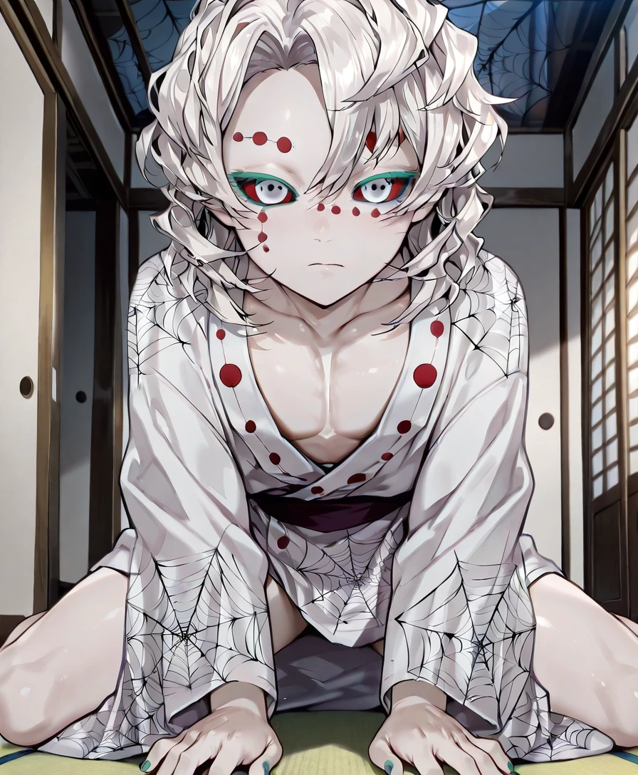 white kimono,spider web pattern,