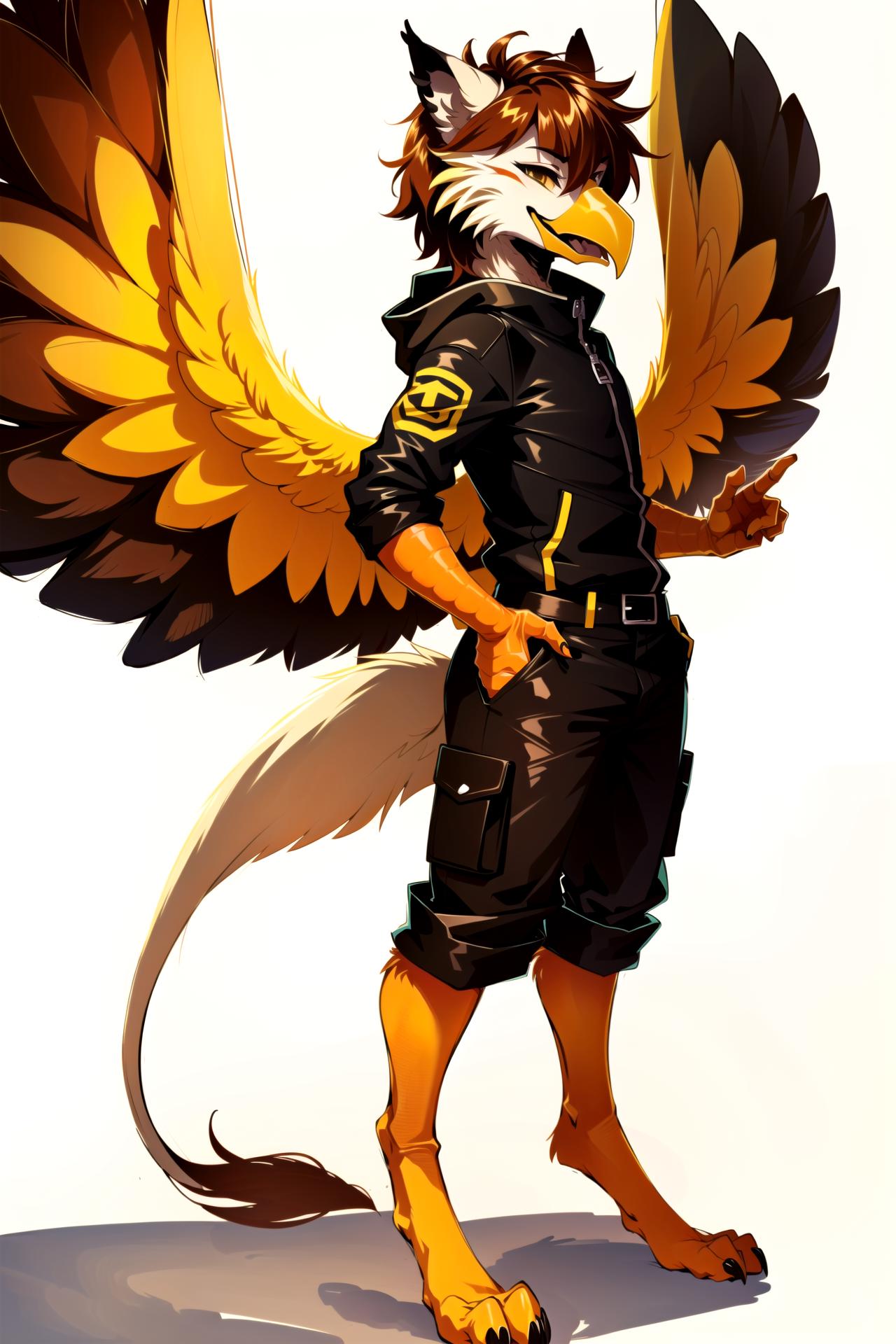 Does sfw and nsfw both male and female. I used these in the training for the various Griffin traits: griffin, griffin paws, griffin tail, paw pads. If you're getting backwards feet try negative prompt paw pads. negative prompt "tail feathers" and "short tail" to help prevent regular bird tails.