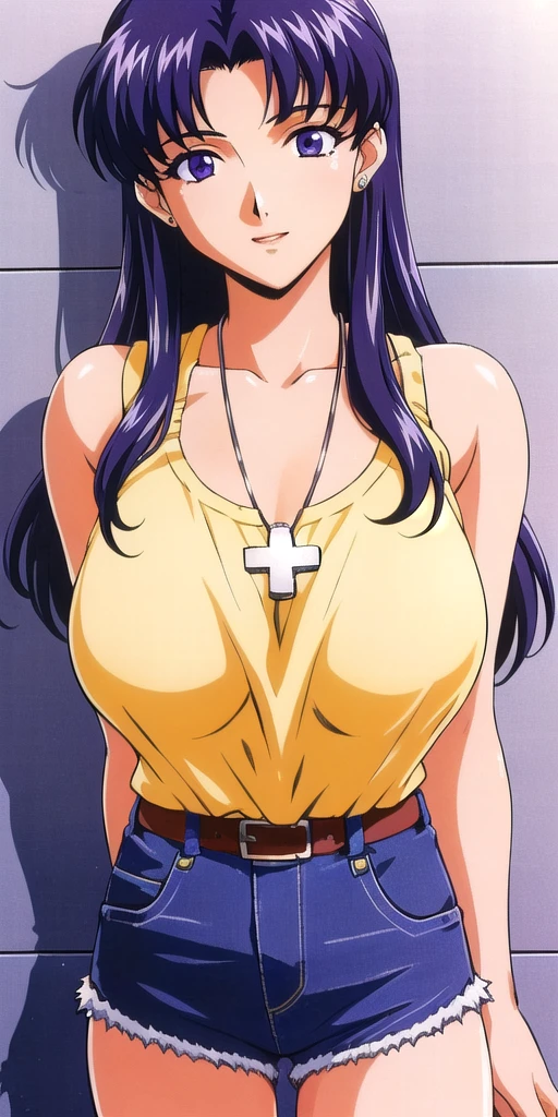 Had nice results with: <lora:Katsuragi_Misato:.45>, Katsuragi_Misato, big_breasts, cross_necklace