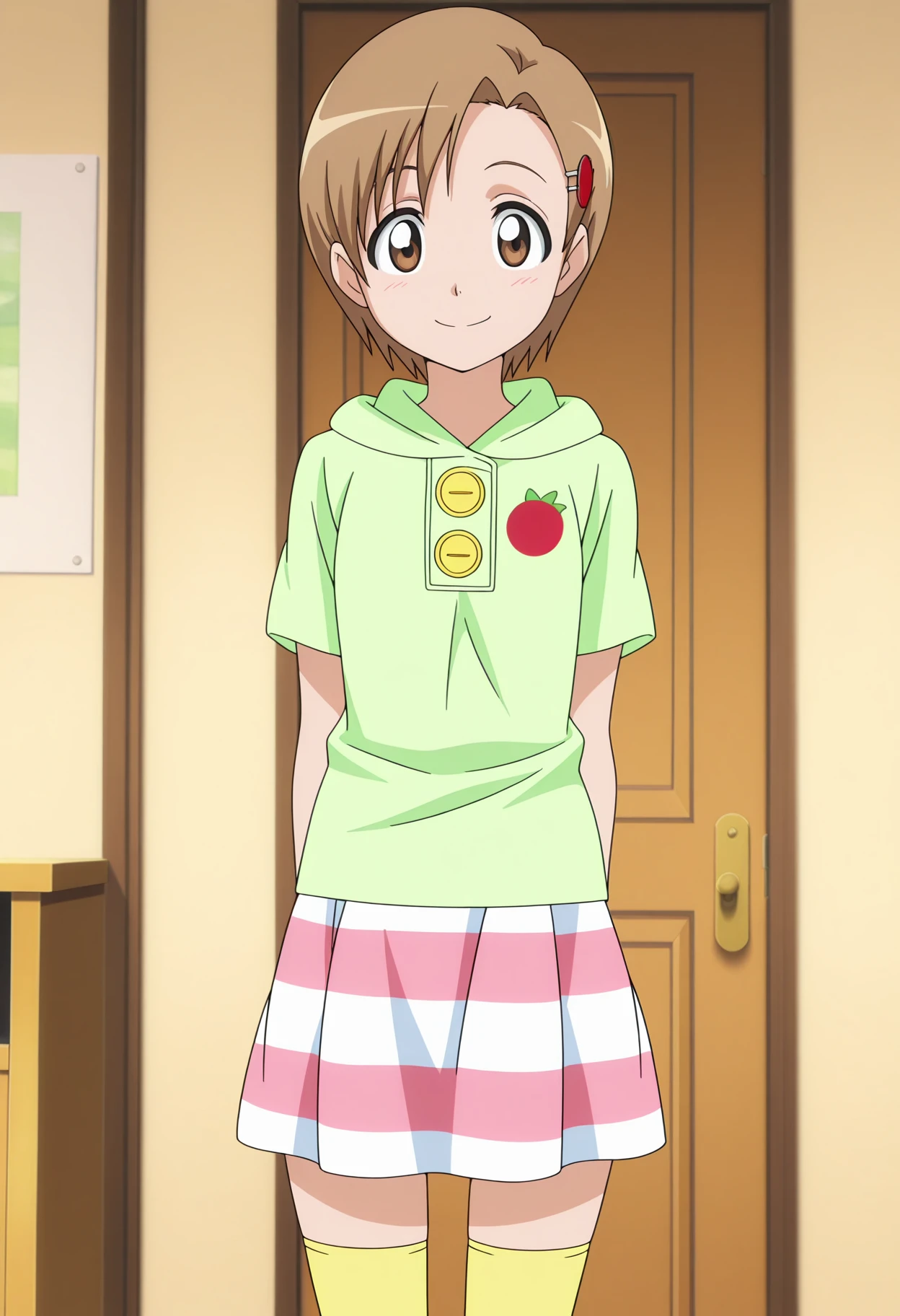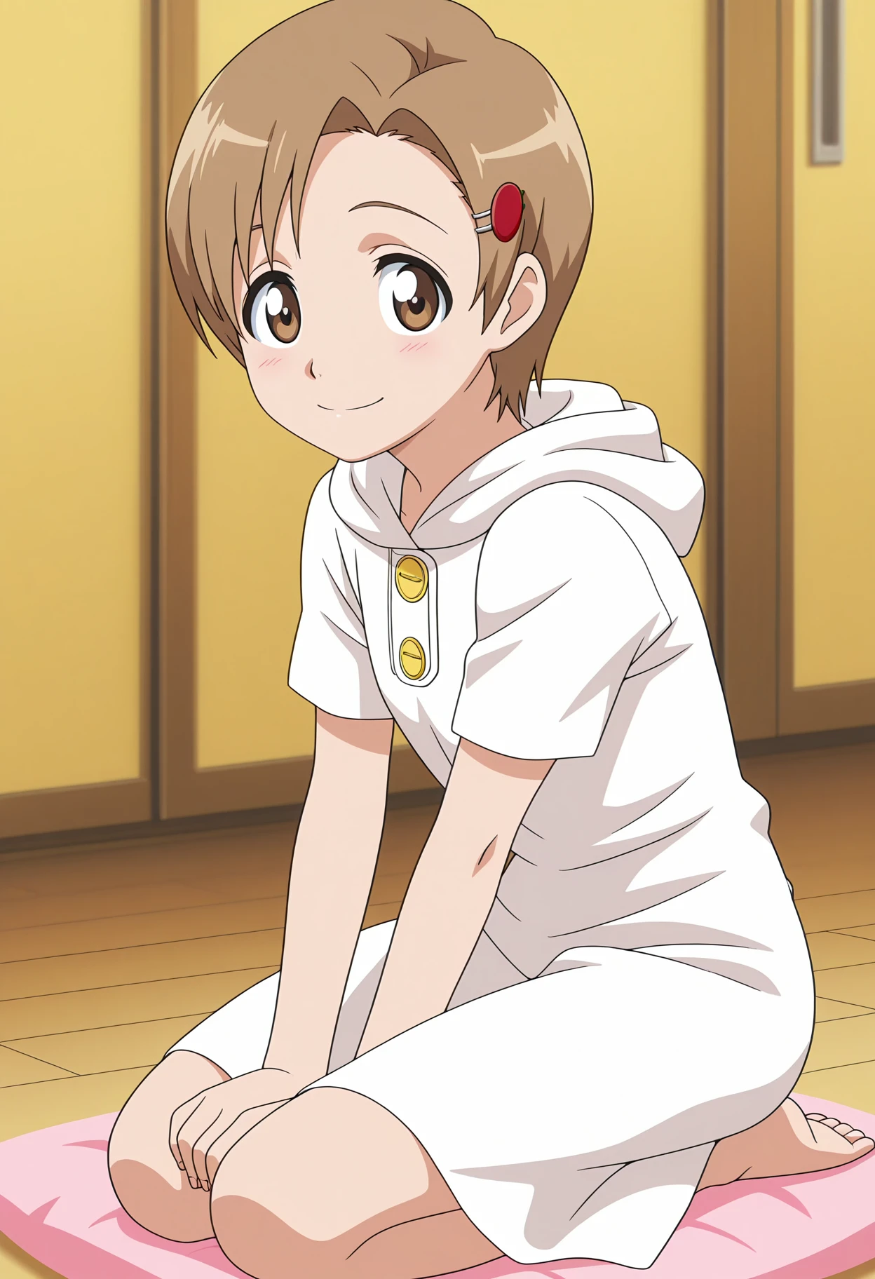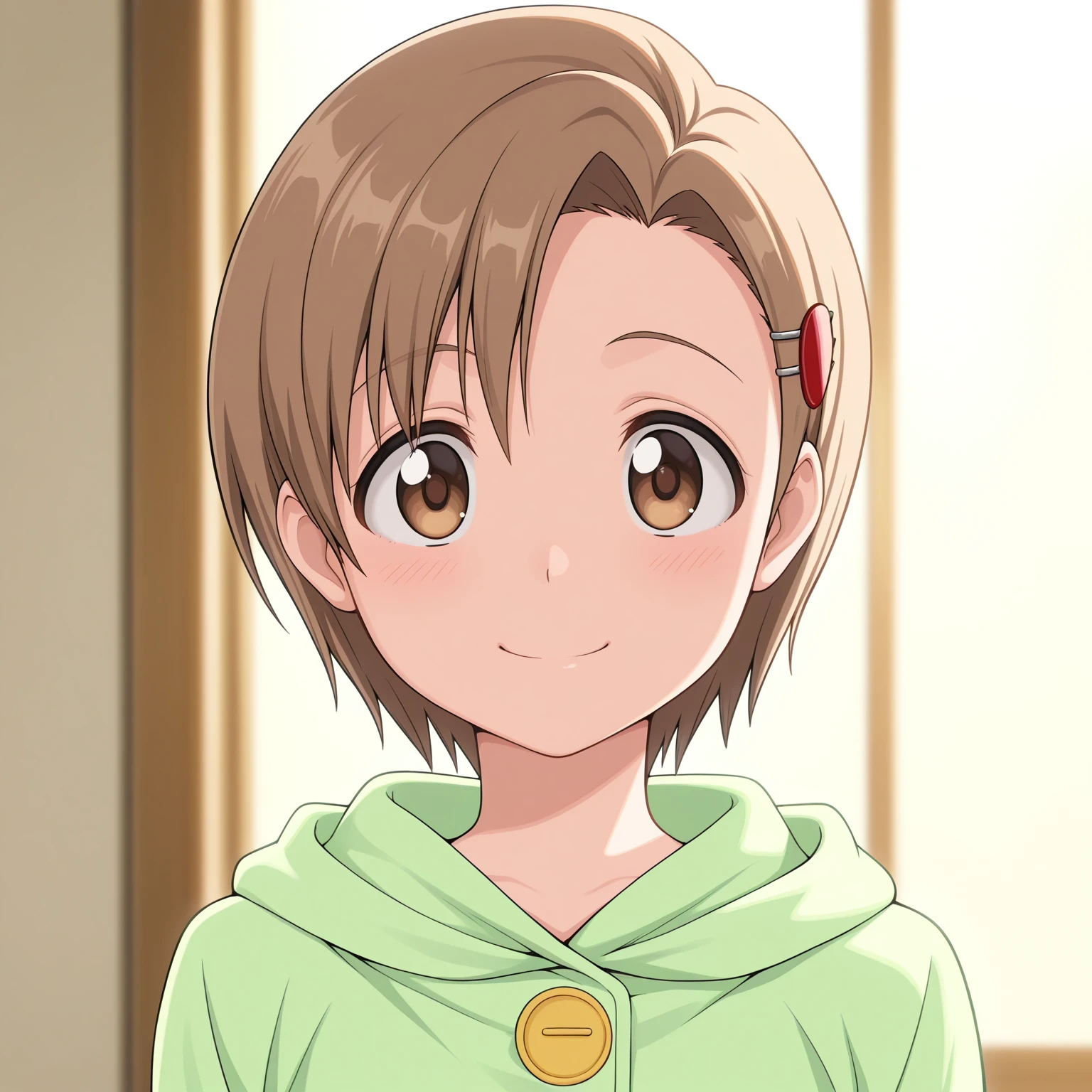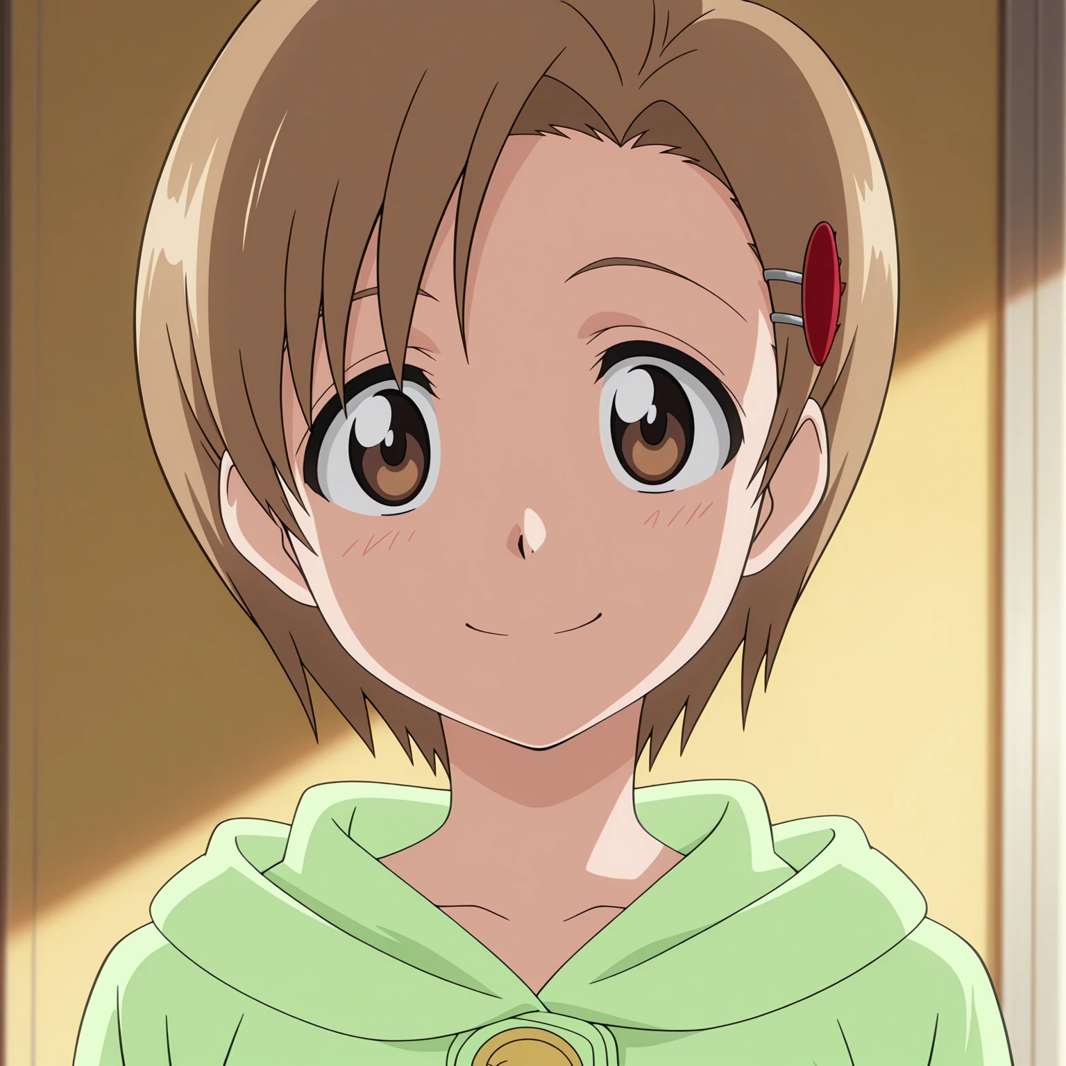 yuzu, 1girl, short hair, brown eyes, brown hair, hairclip, hair ornament,