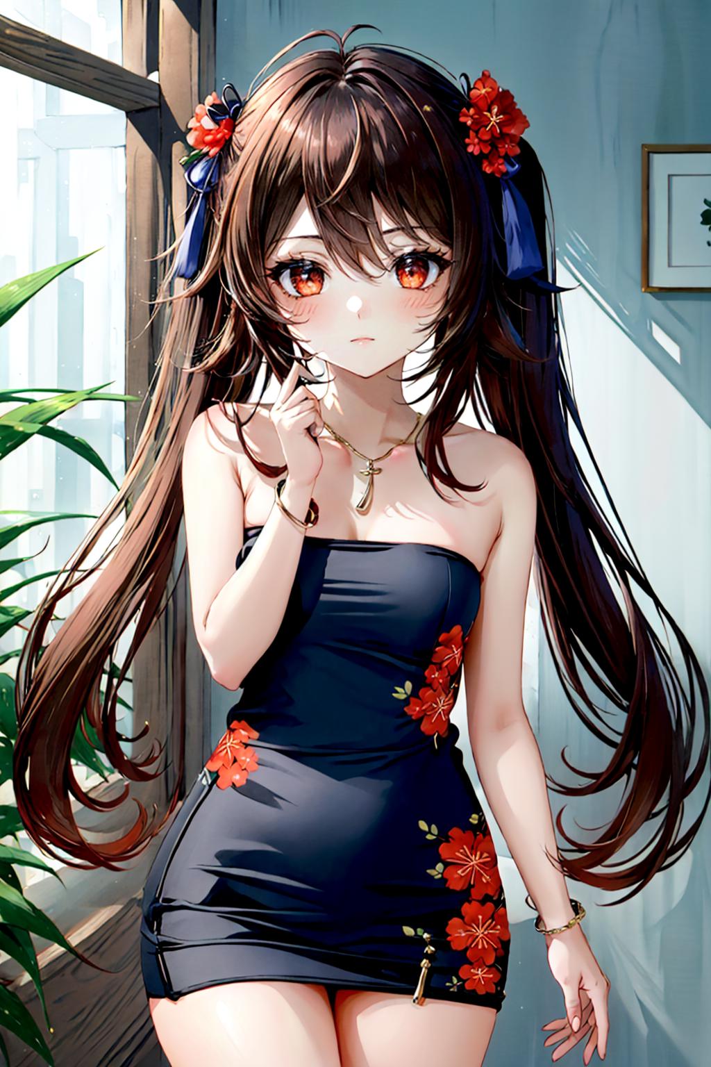 A secondary tube clothing style lora. This one is for dresses that go about chest height to below the waist. Suggested to be used at 0.6. This model was trained on NAI anime-full-pruned and generated in CuteYuki Special. Made with the Kohya tool for AI Training through google colab. Any suggestions to improve or recommended things for the data set would be appreciated.