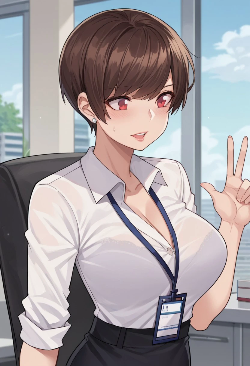 Base1 : olive laurentia, 1girl, short hair, brown hair, red eyes, large breasts,