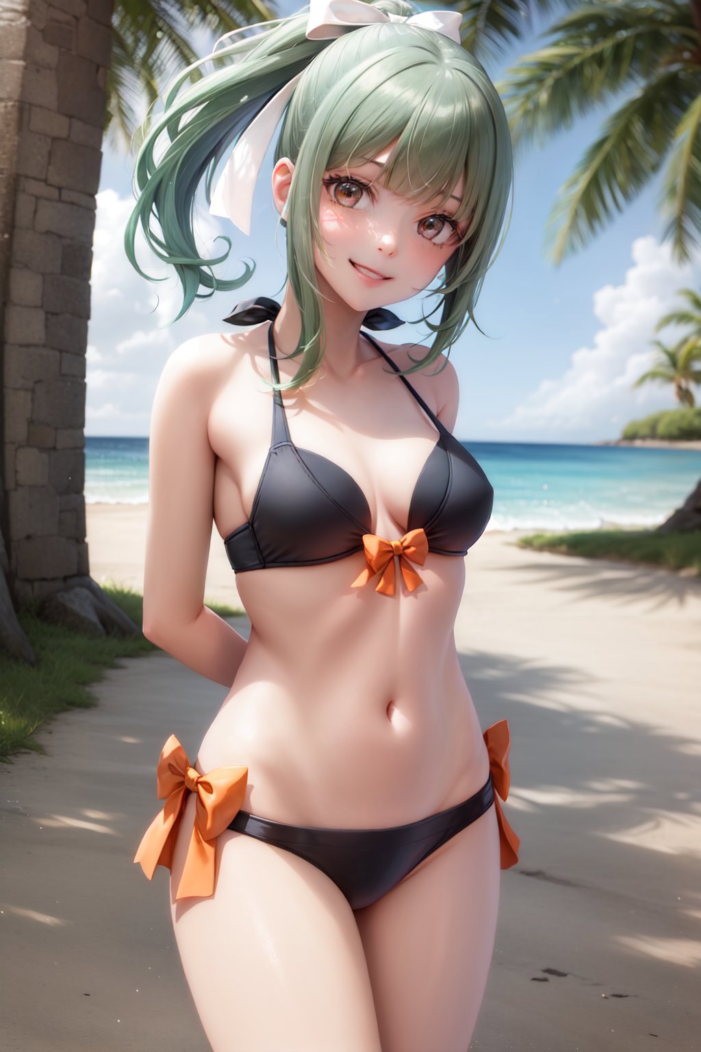 yuubarisummer, ponytail, hair ribbon, bikini, bow