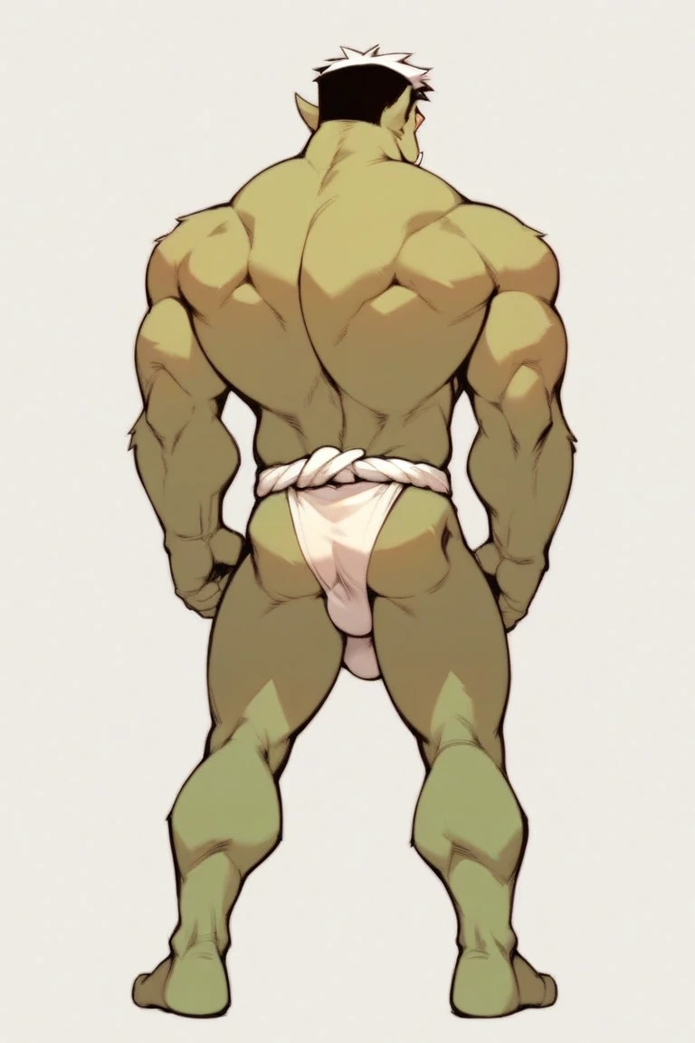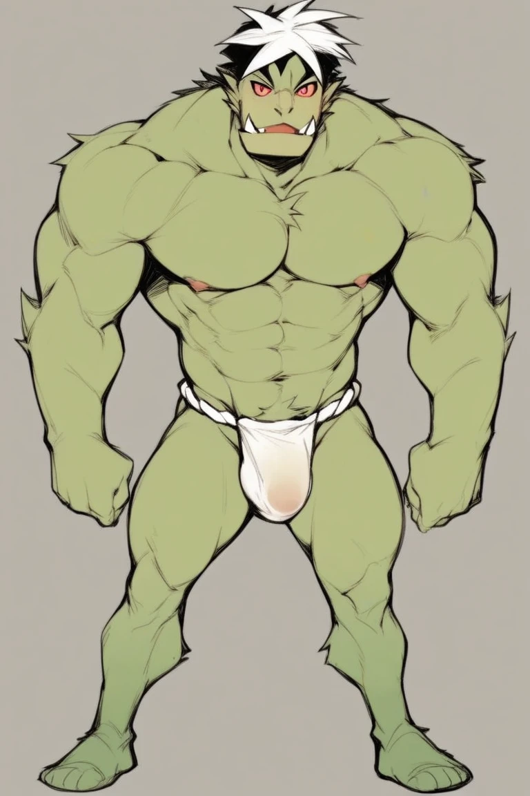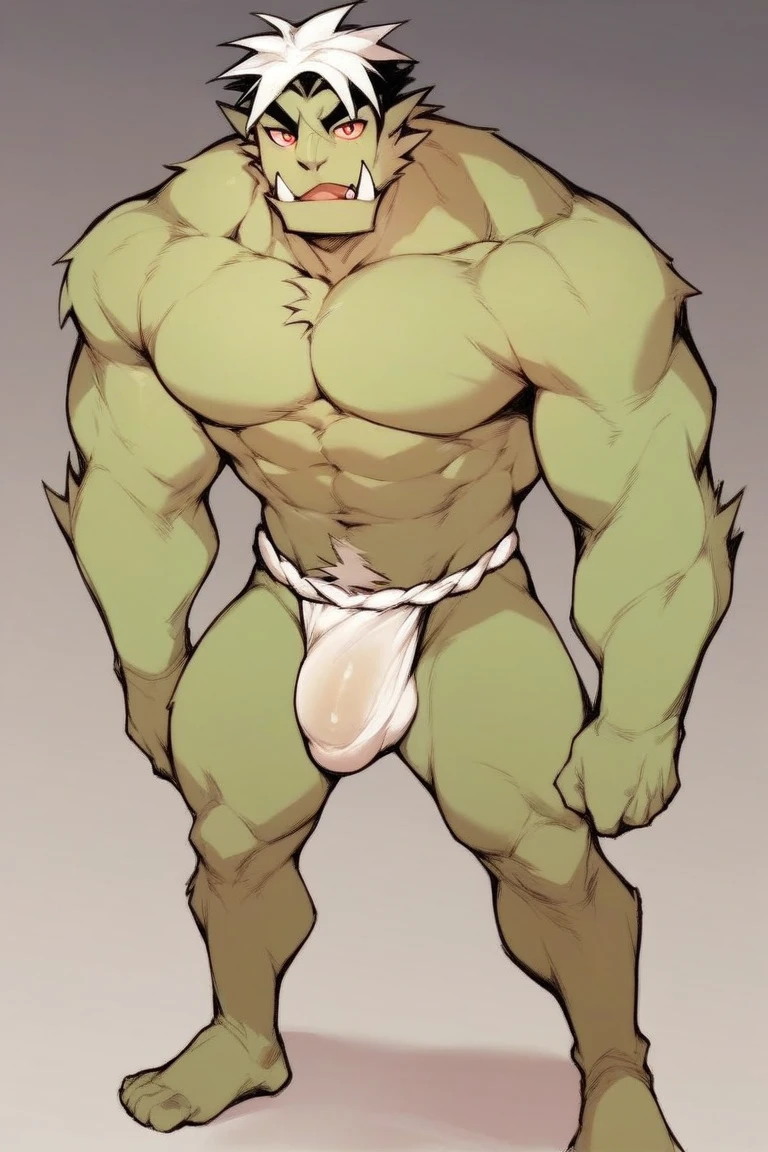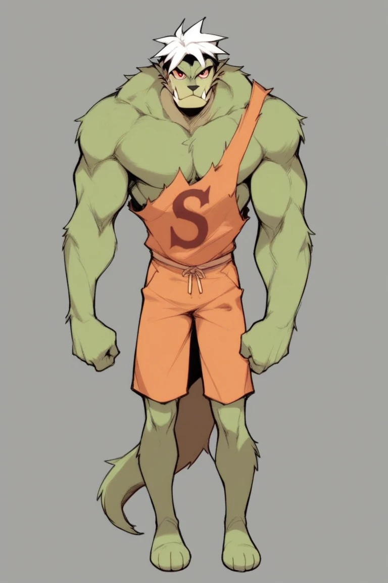 solo, hybrid saturday, green fur, red eye sclera, fangs, standing