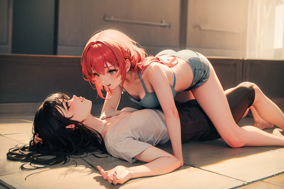 2girls,lying on person,yuri
