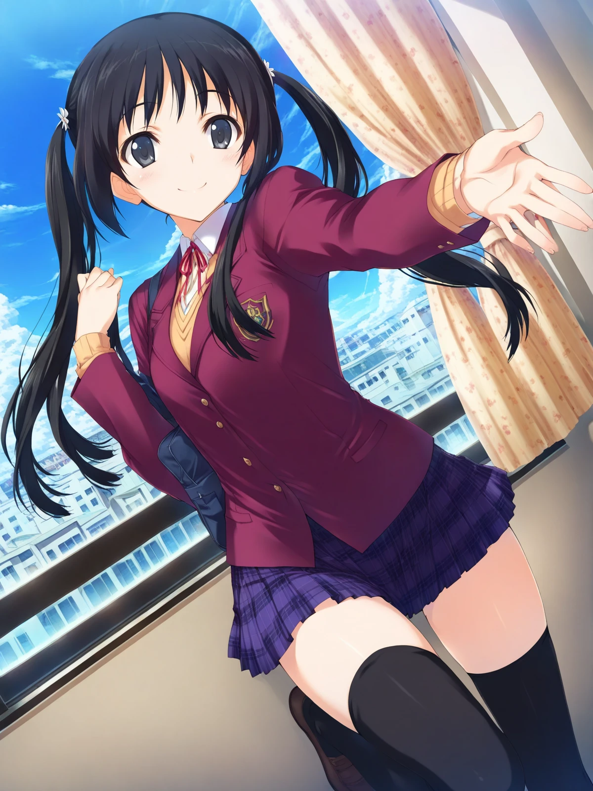 thighhighs, school uniform, skirt, zettai ryouiki, blazer, jacket, plaid skirt, pleated skirt