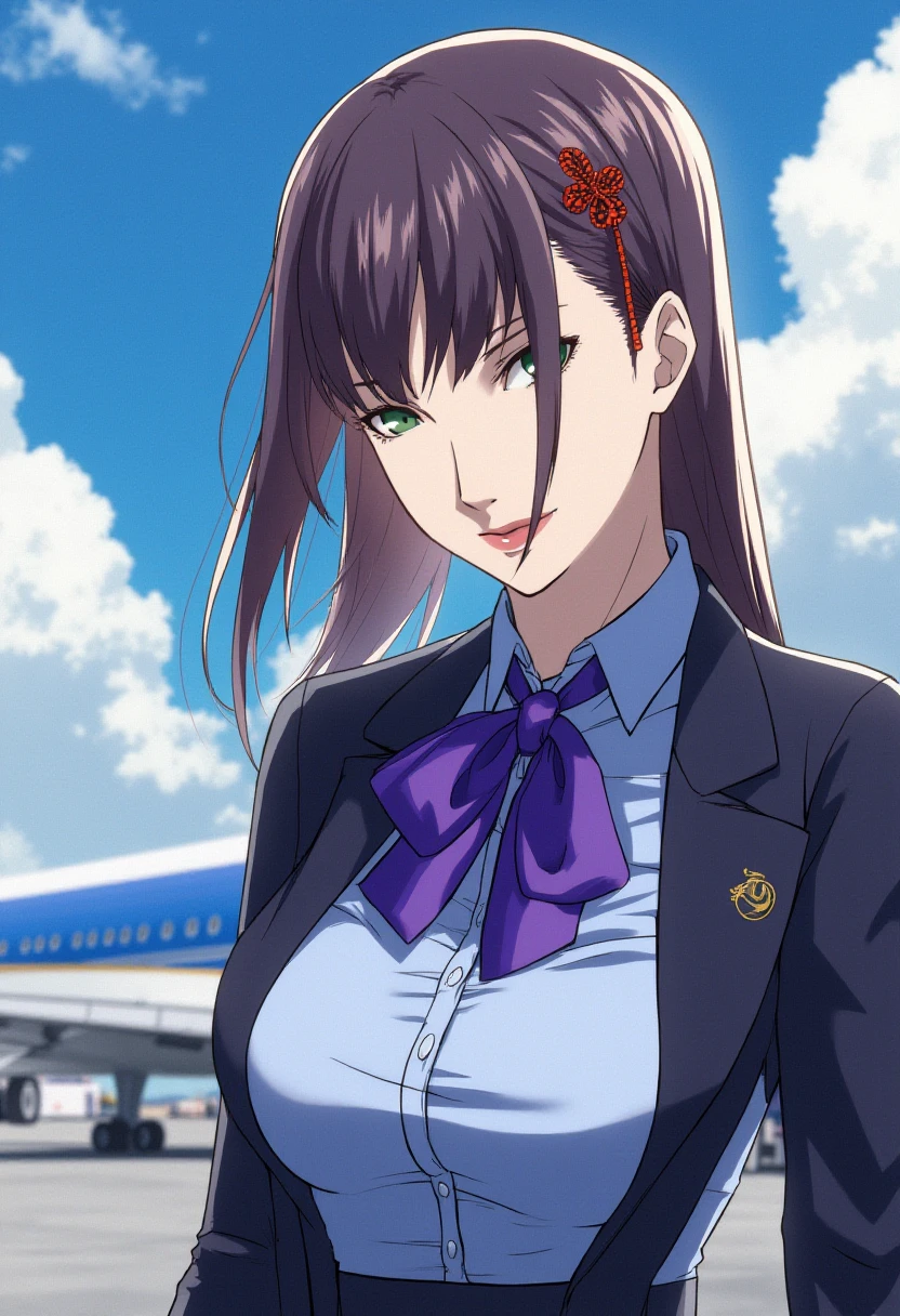 If you want to make her signature red hair ornament to show, you can add "hair ornament" to the prompt.