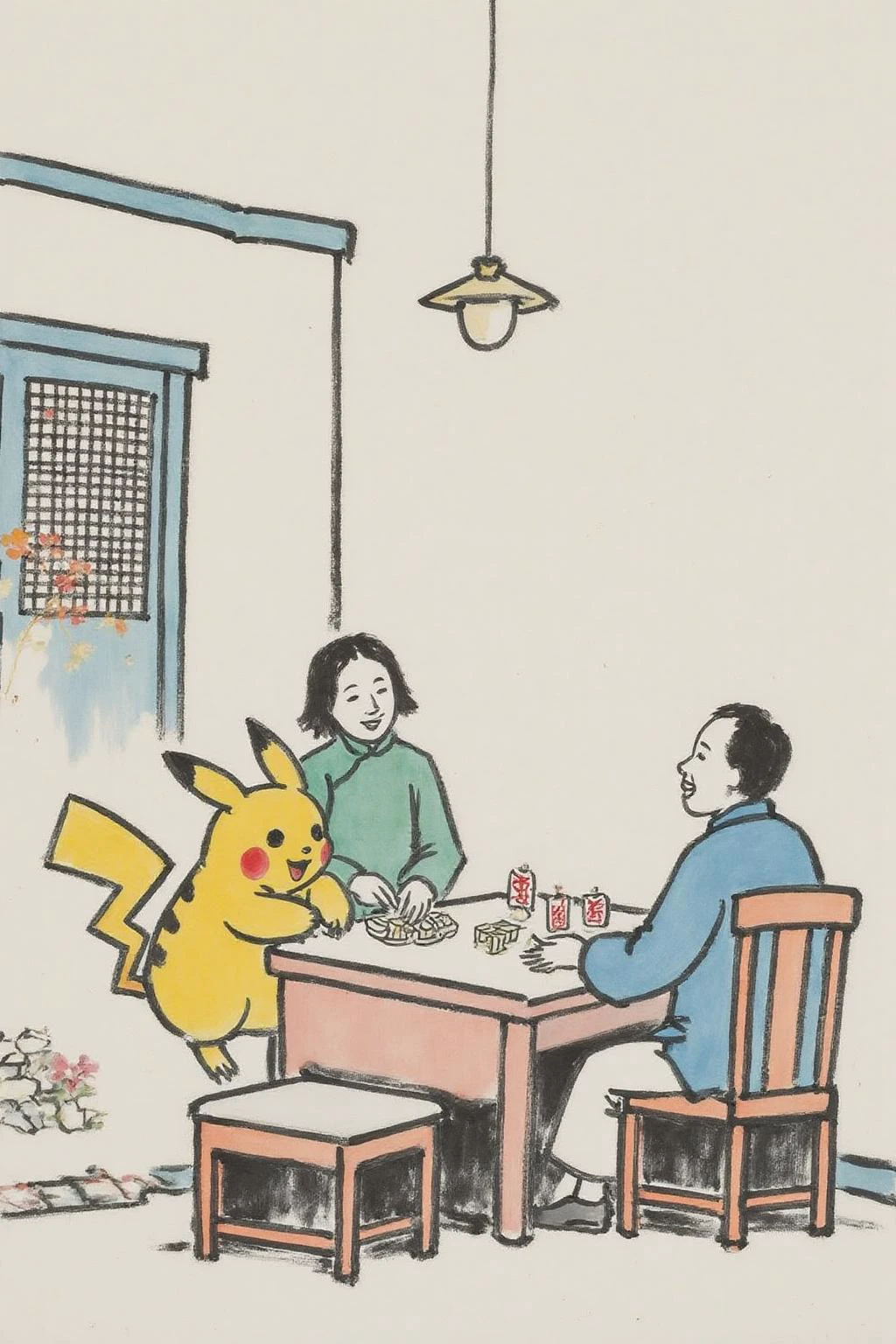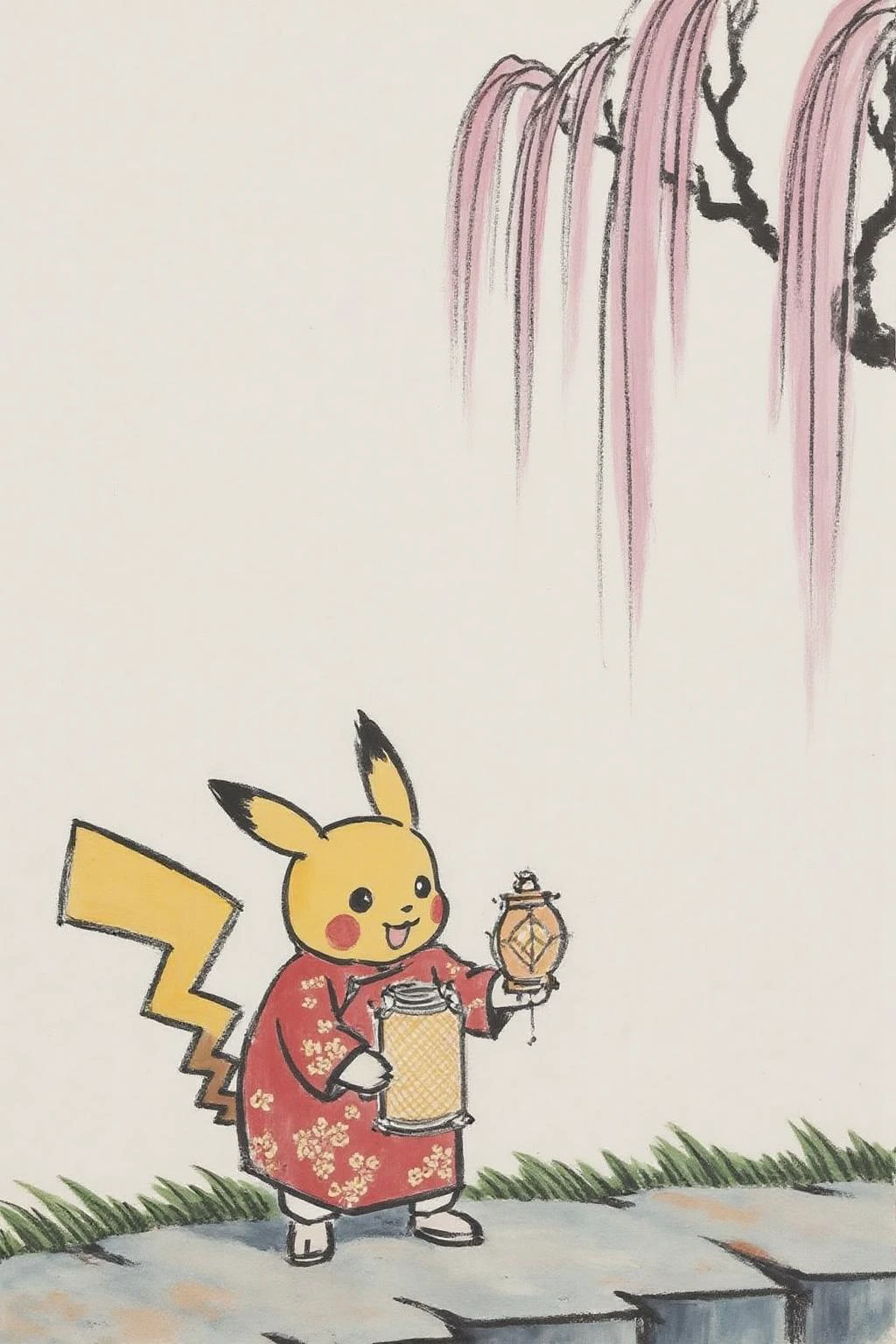 Trained on nineteen ink brush paintings by the beloved Chinese artist Feng Zikai (豐子愷). His depiction of the simple joys of life among ordinary people, painted in a minimalistic, almost childlike simplicity, is instantly recognizable by the Chinese people. You can find his work here: https://www.artnet.com/artists/feng-zikai/