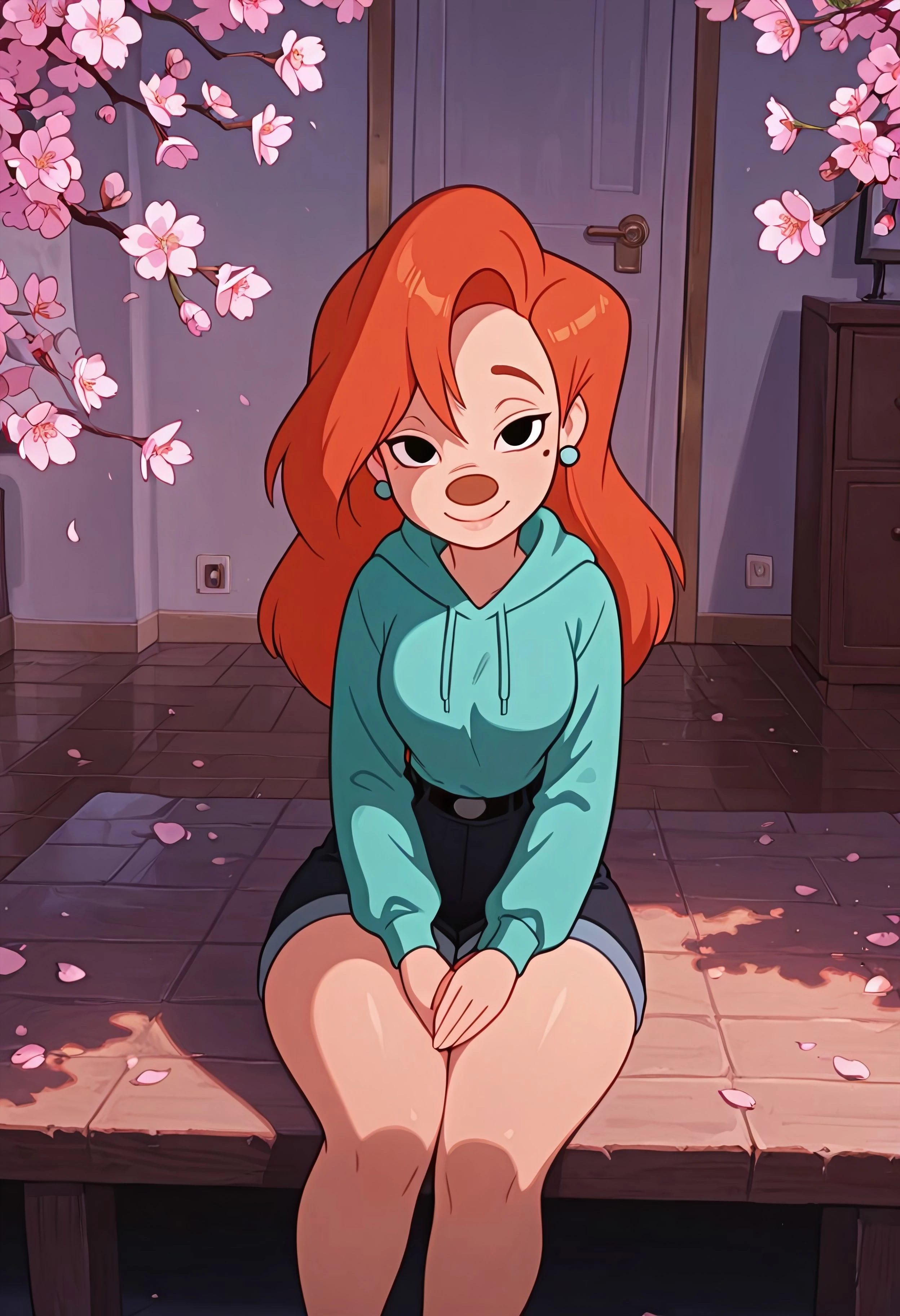 R0x4nne, black eyes, ginger hair, long hair, mole under eye, earrings