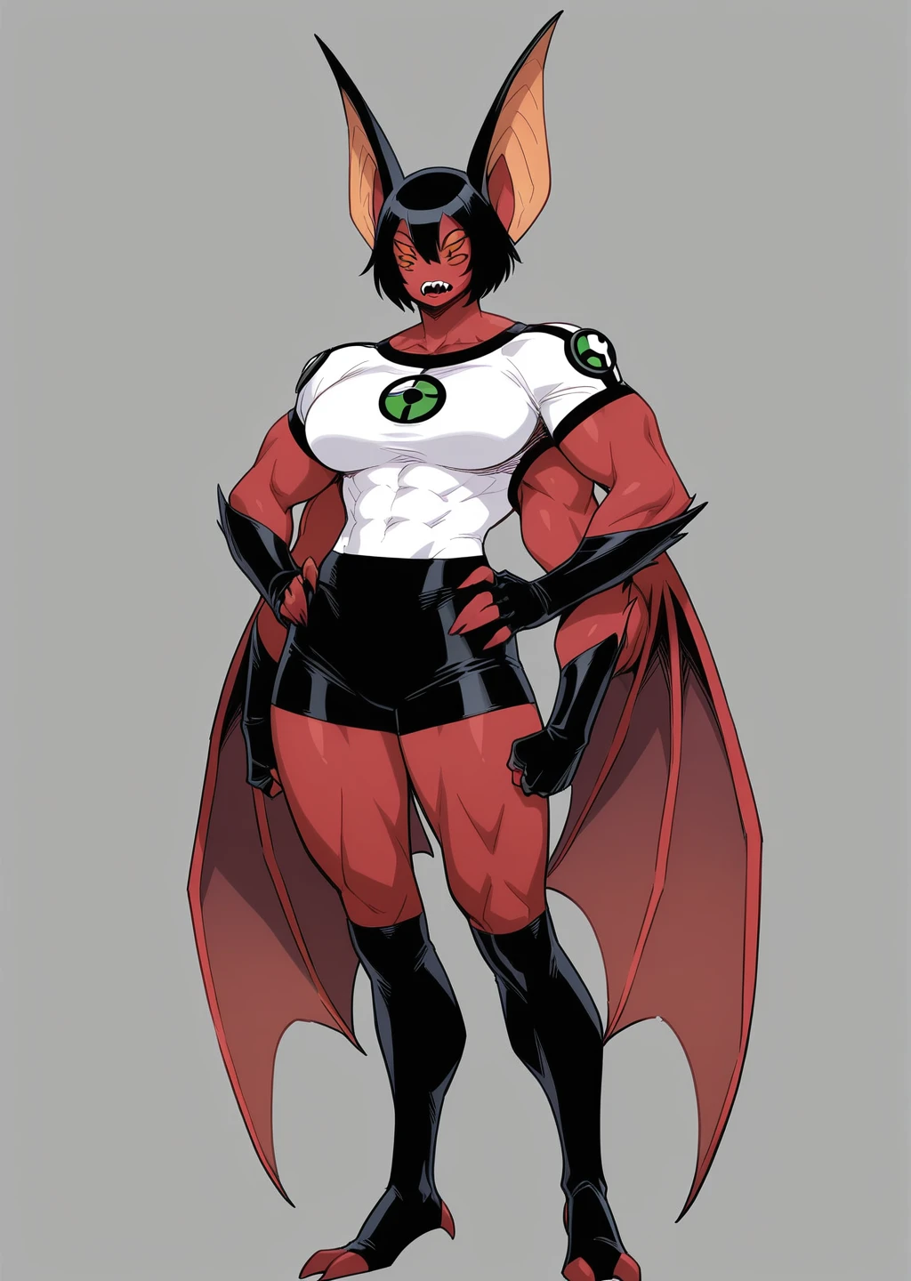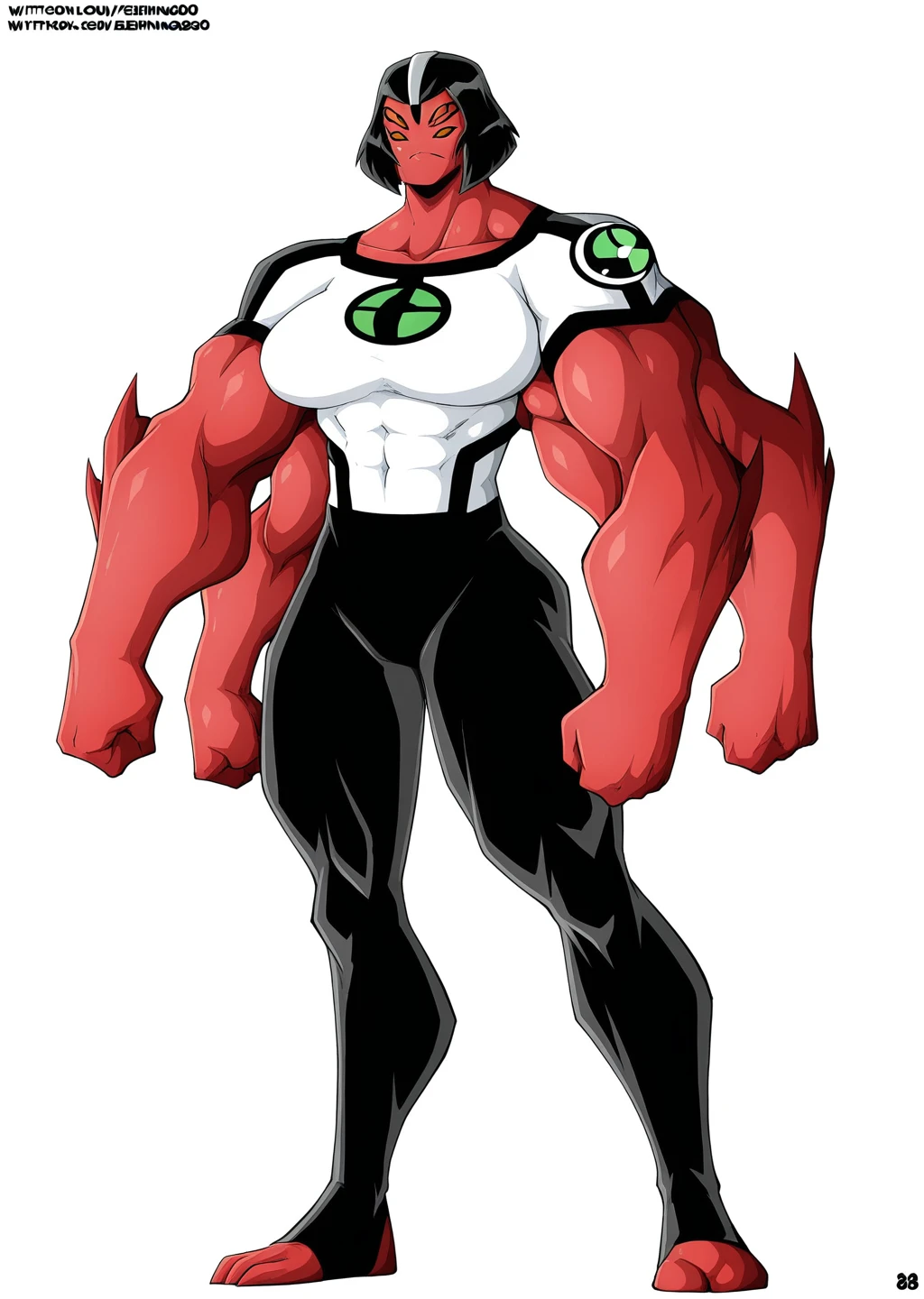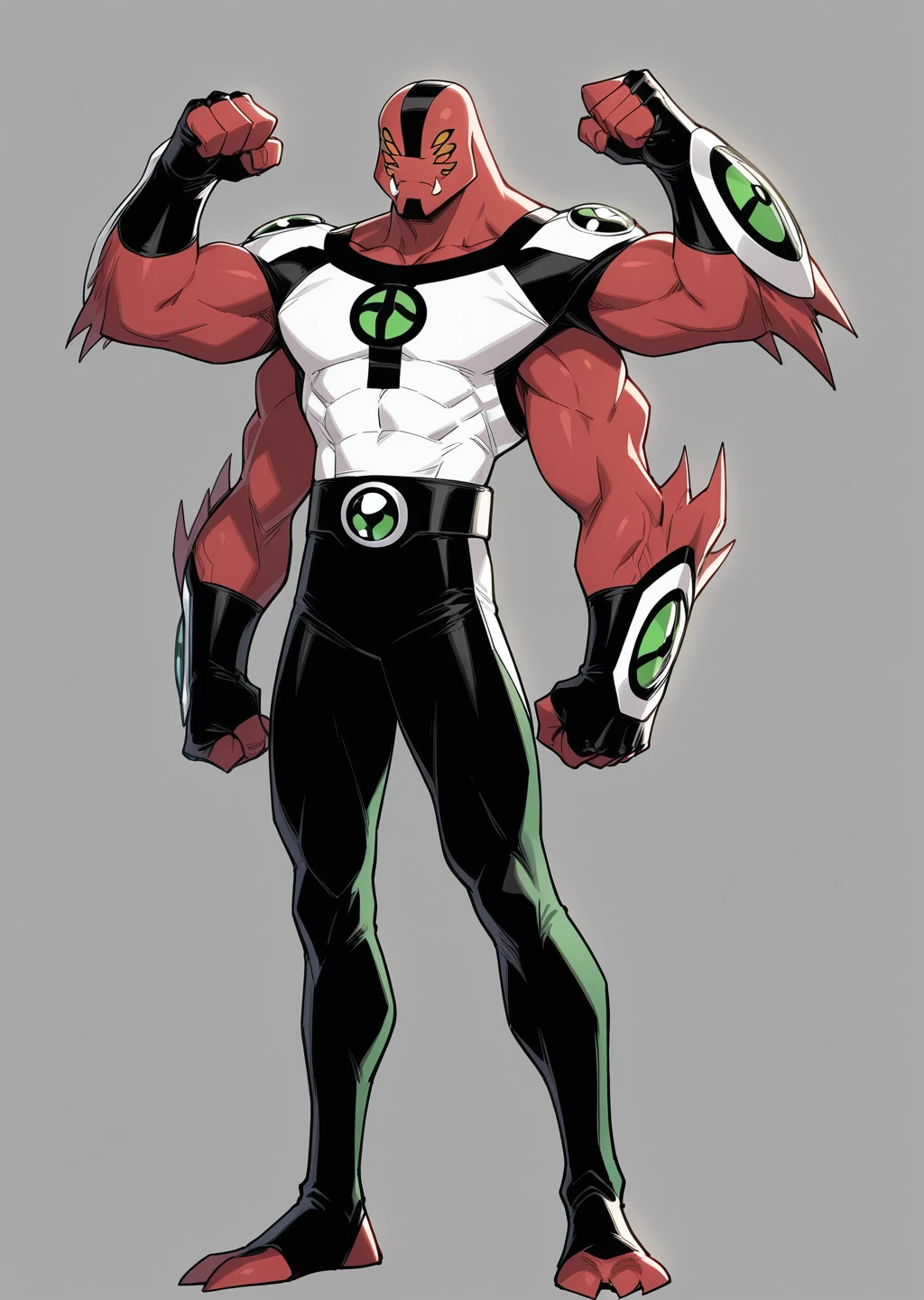 red skin, colored skin, muscular, alien, 4arms, multiple arms, multiple eyes, 4eyes, ben10,