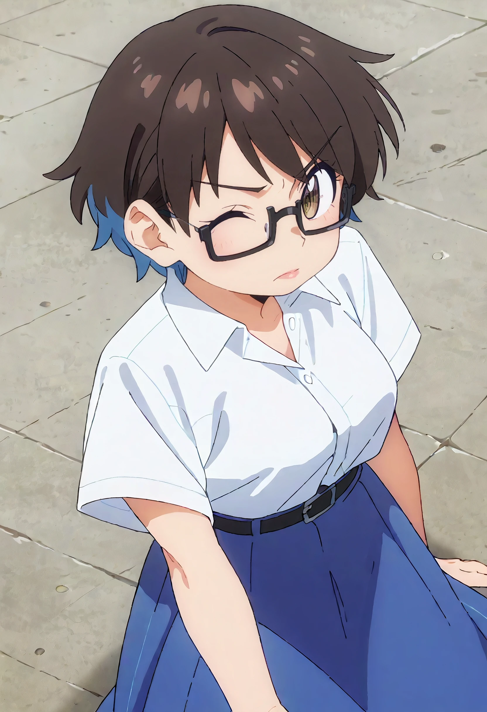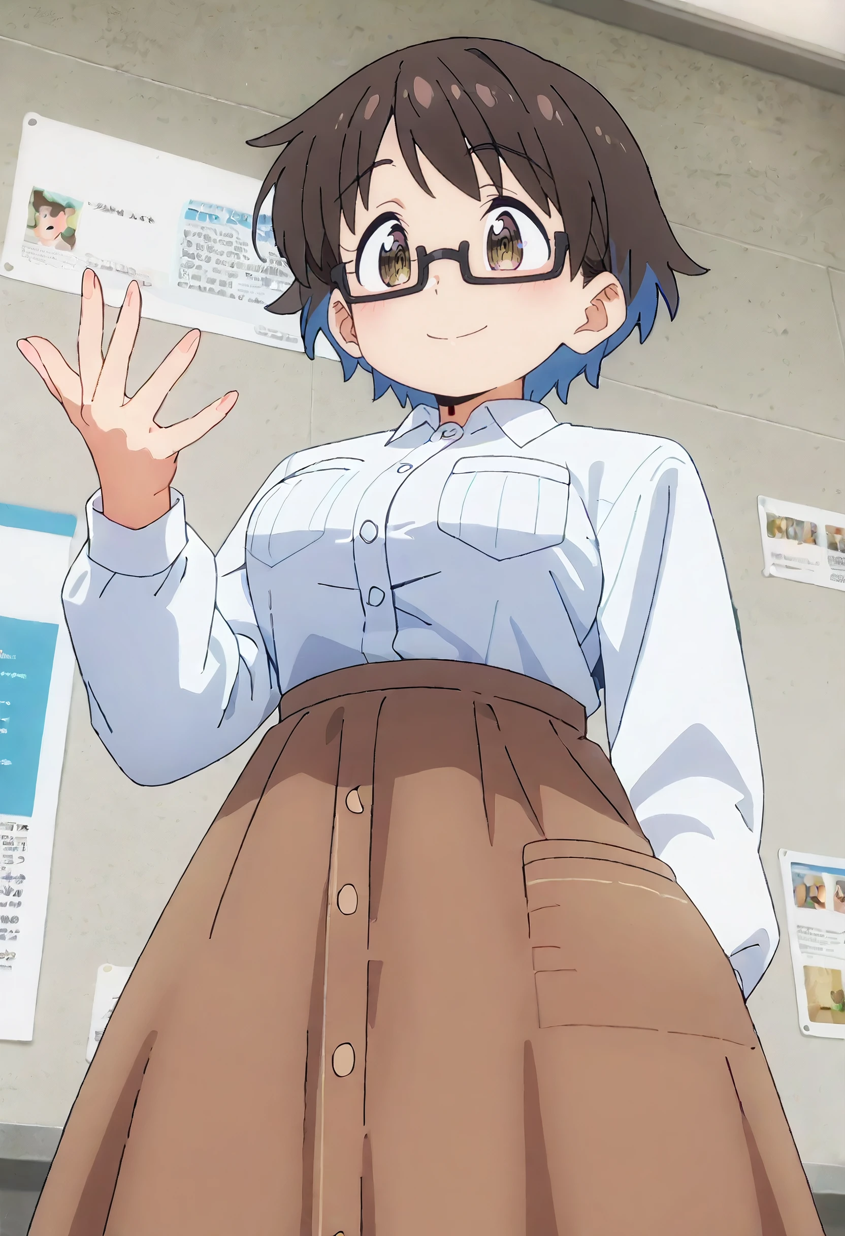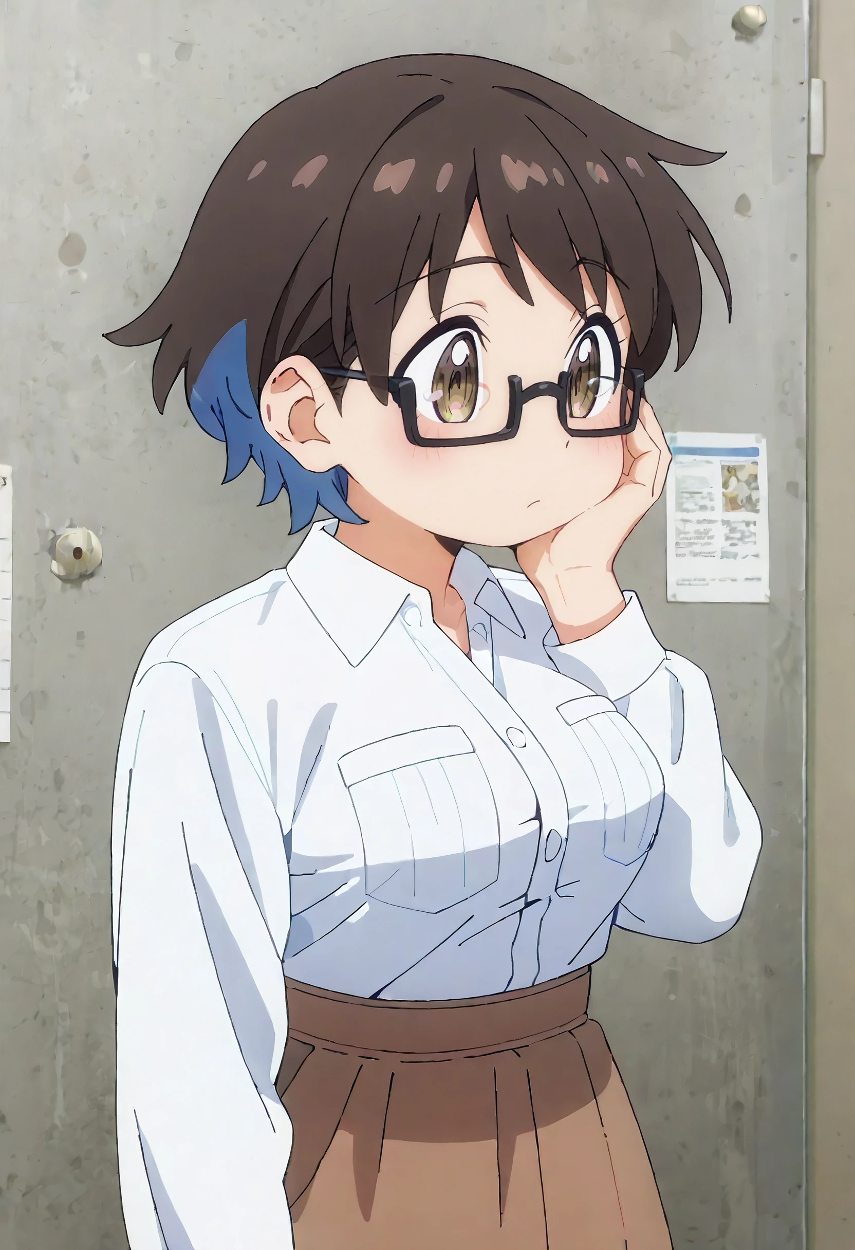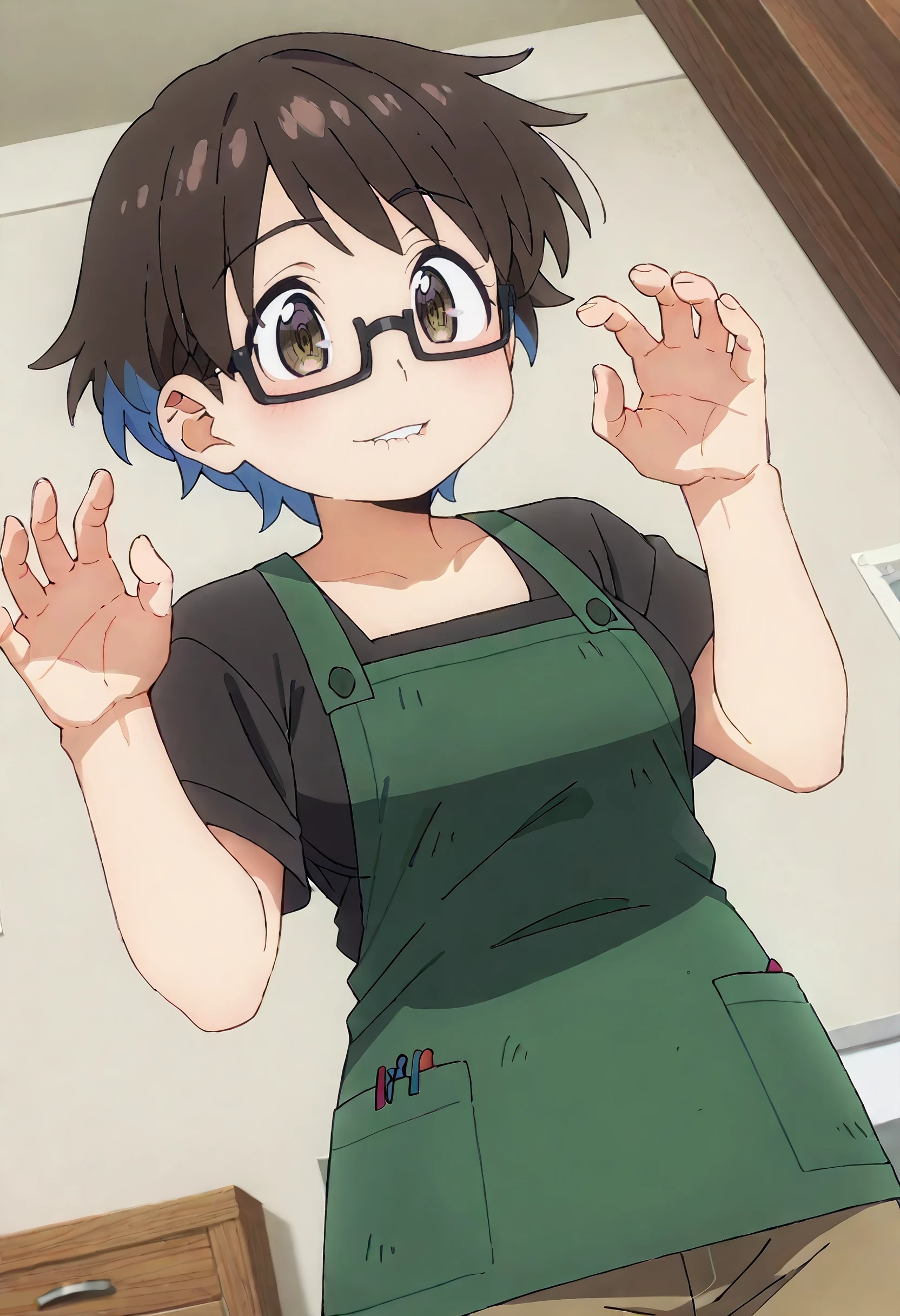 RNHYouko, brown hair, short hair, glasses, black-framed eyewear, multicolored hair, blue hair, two-tone hair, colored inner hair, semi-rimless eyewear, brown eyes, rectangular eyewear,