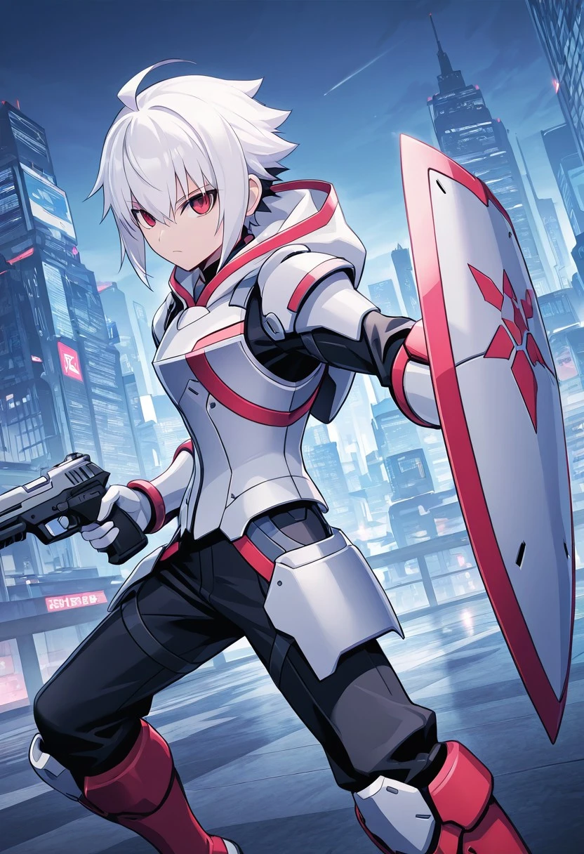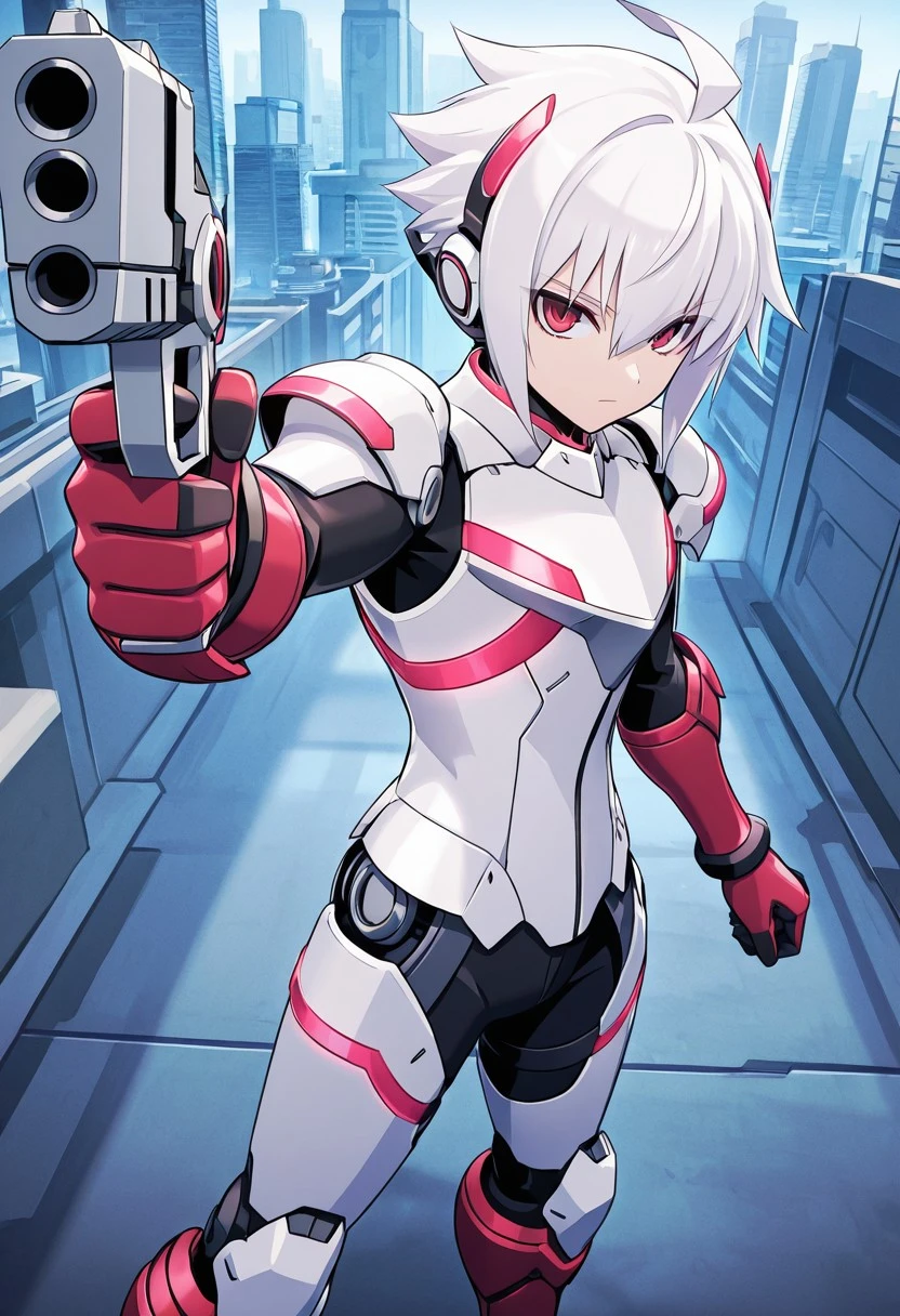 white armor, ,red gloves, red boots, robot joints,