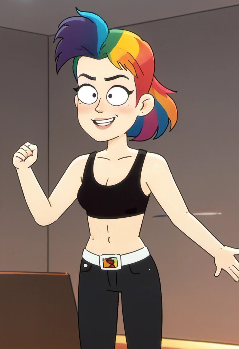 - Tina's signature rainbow hair color sometimes need prompted. Use "rainbow hair." She's more likely to show up with her natural brown hair if you prompt her 14 years old or younger, since that's when she dyed her hair.