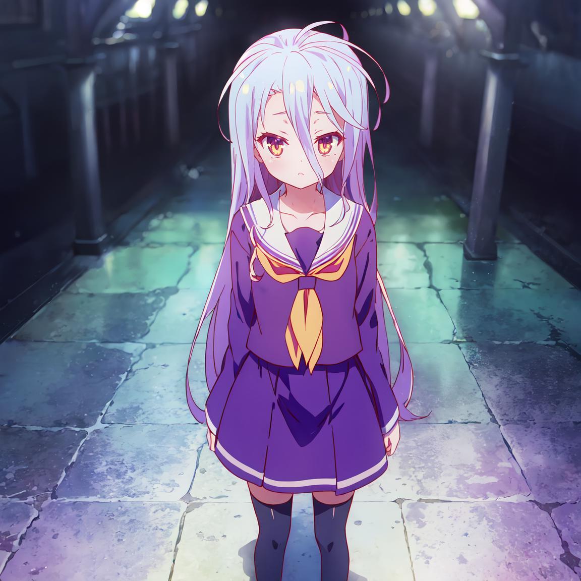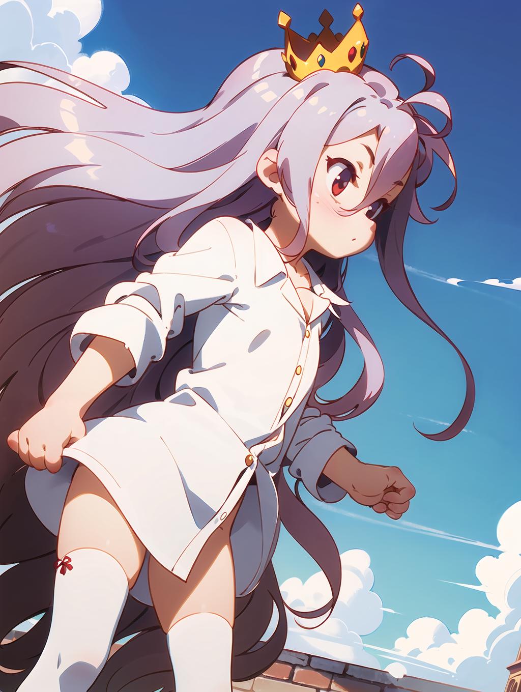Apperance: ngnlshiro, very long hair, messy hair, flat chest (mini crown optional and I failed to create her one side up hairstyle)