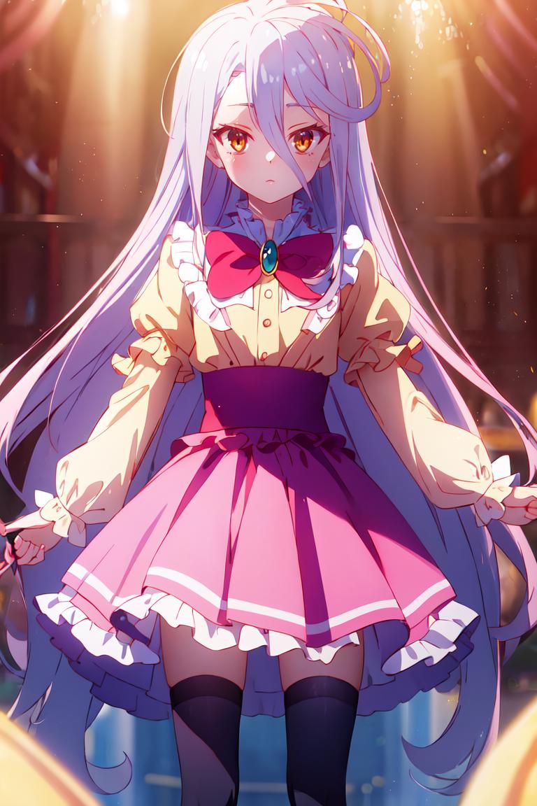 Dress: princess dress, yellow shirt, pink skirt, red bowtie, thighhighs