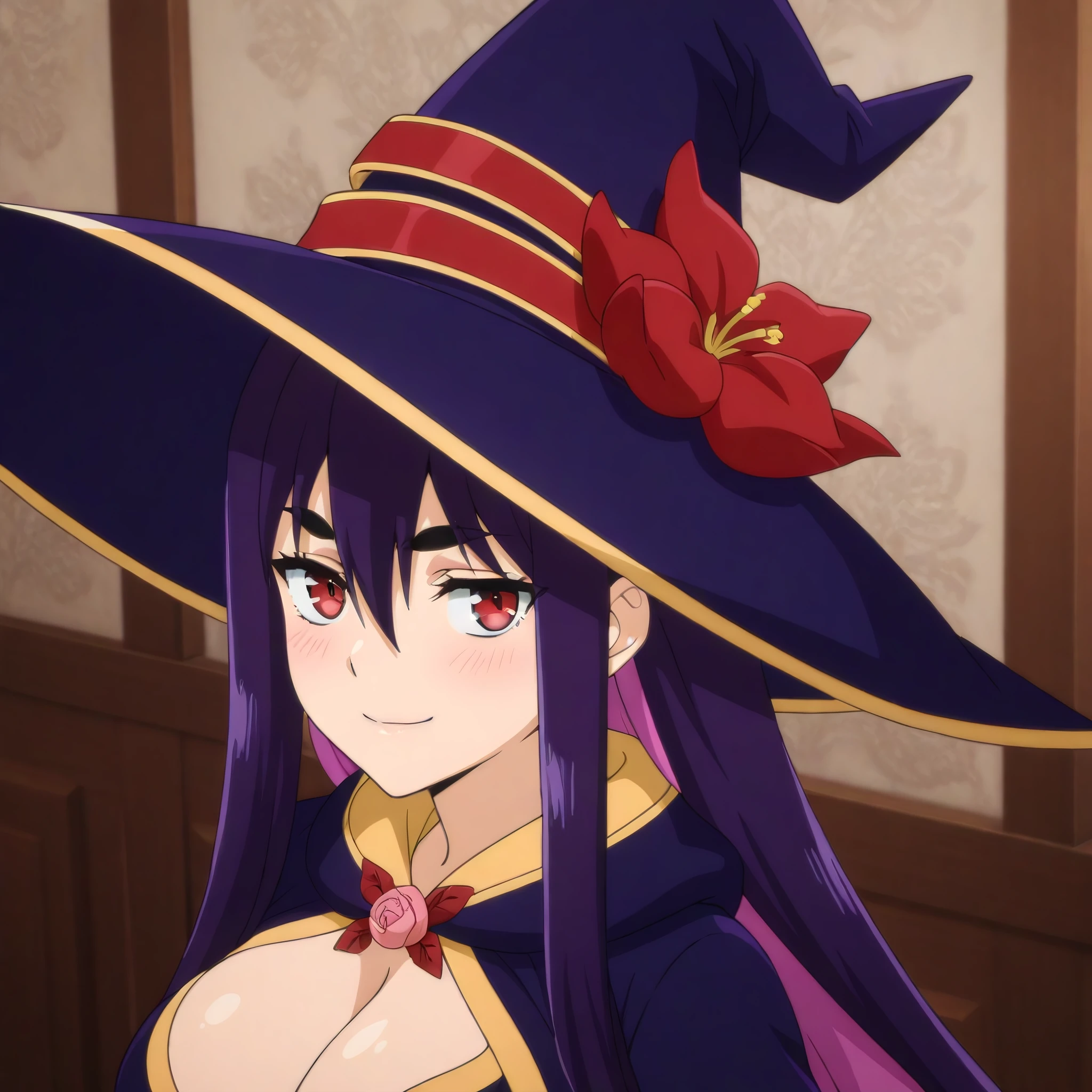 idola_avorn, 1girl, solo, long hair, very long hair, red eyes, purple hair, multicolored hair, pink hair, large breasts,