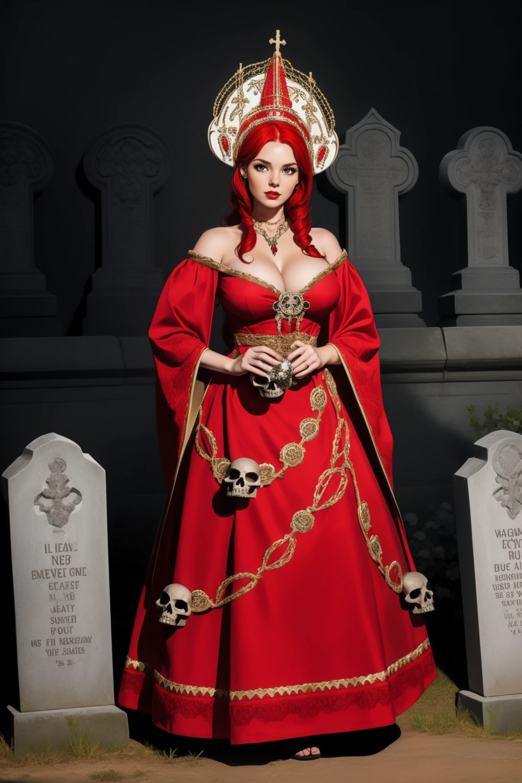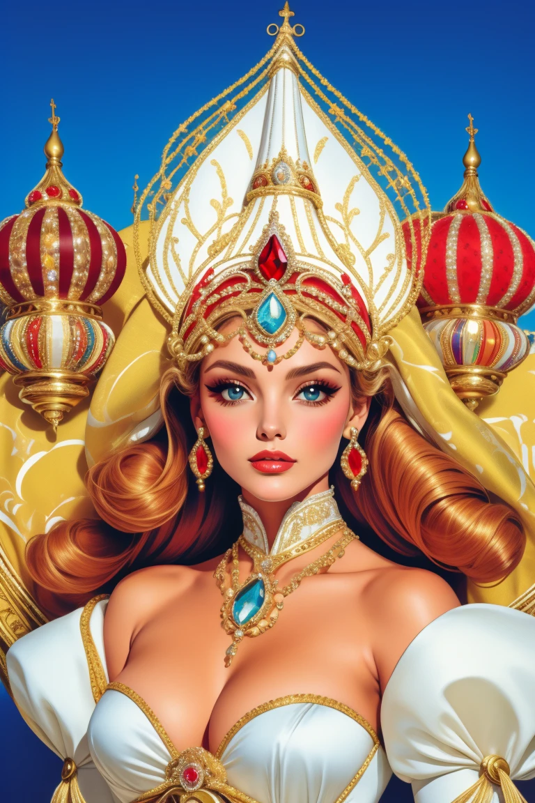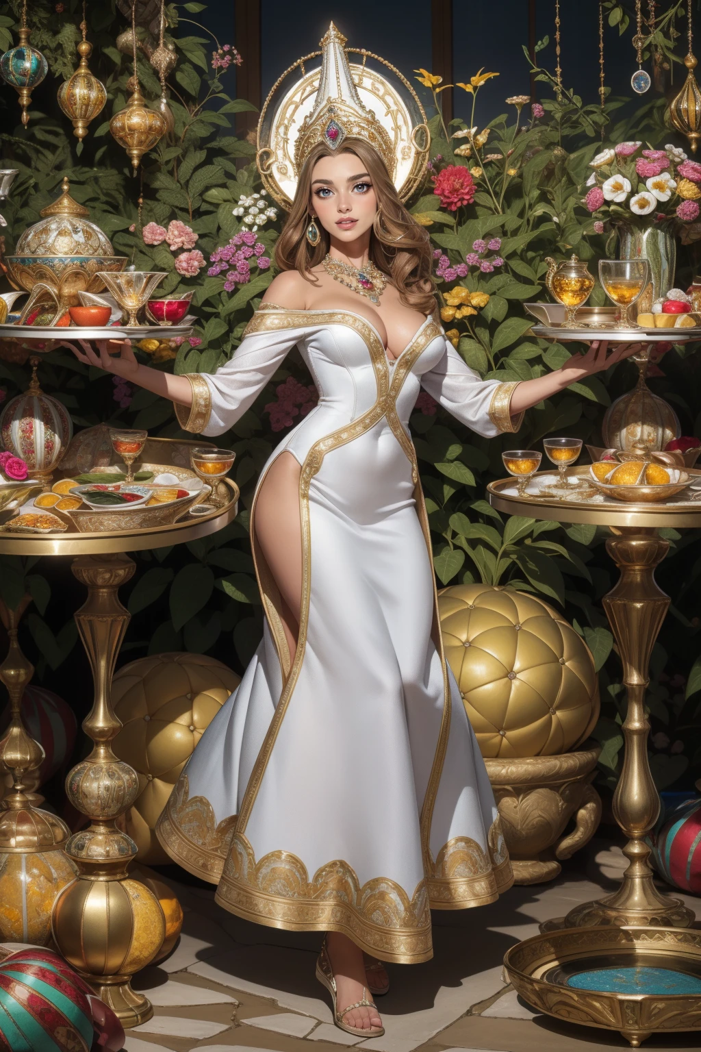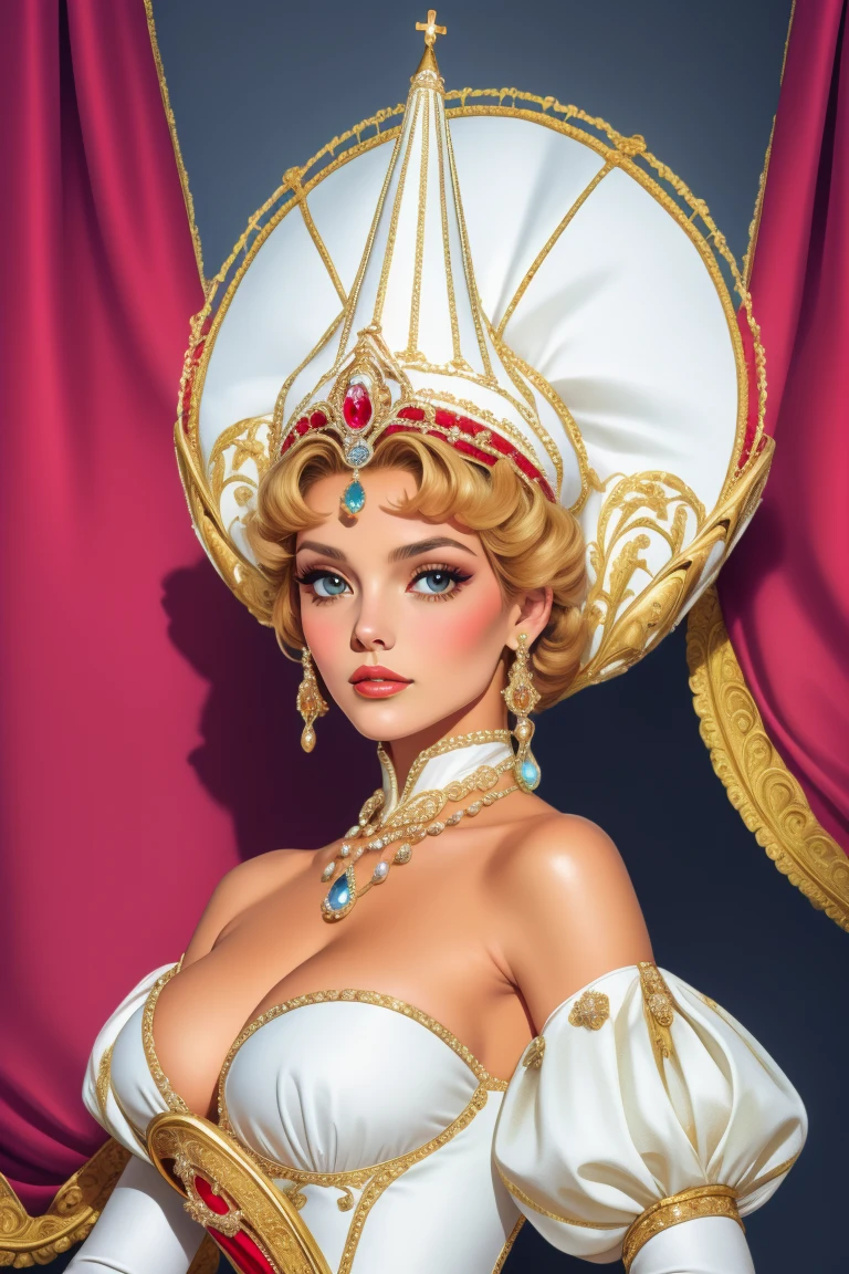 Keywords: HUD_WTF, huge headdress, white dress made of many mitres, abstract neckline with many crowns on shoulder