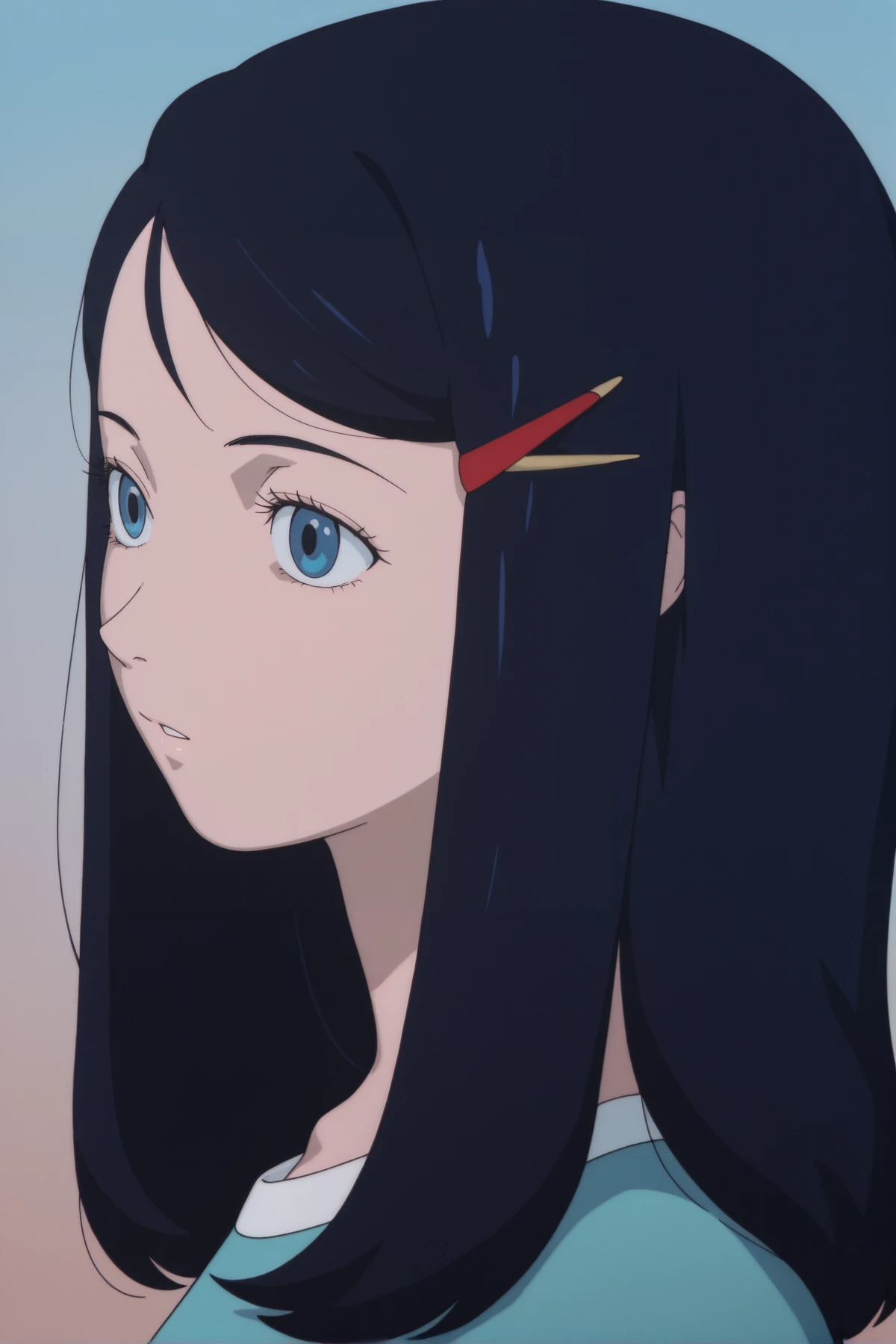 blue pajamas, hair down, long hair, pillow hug