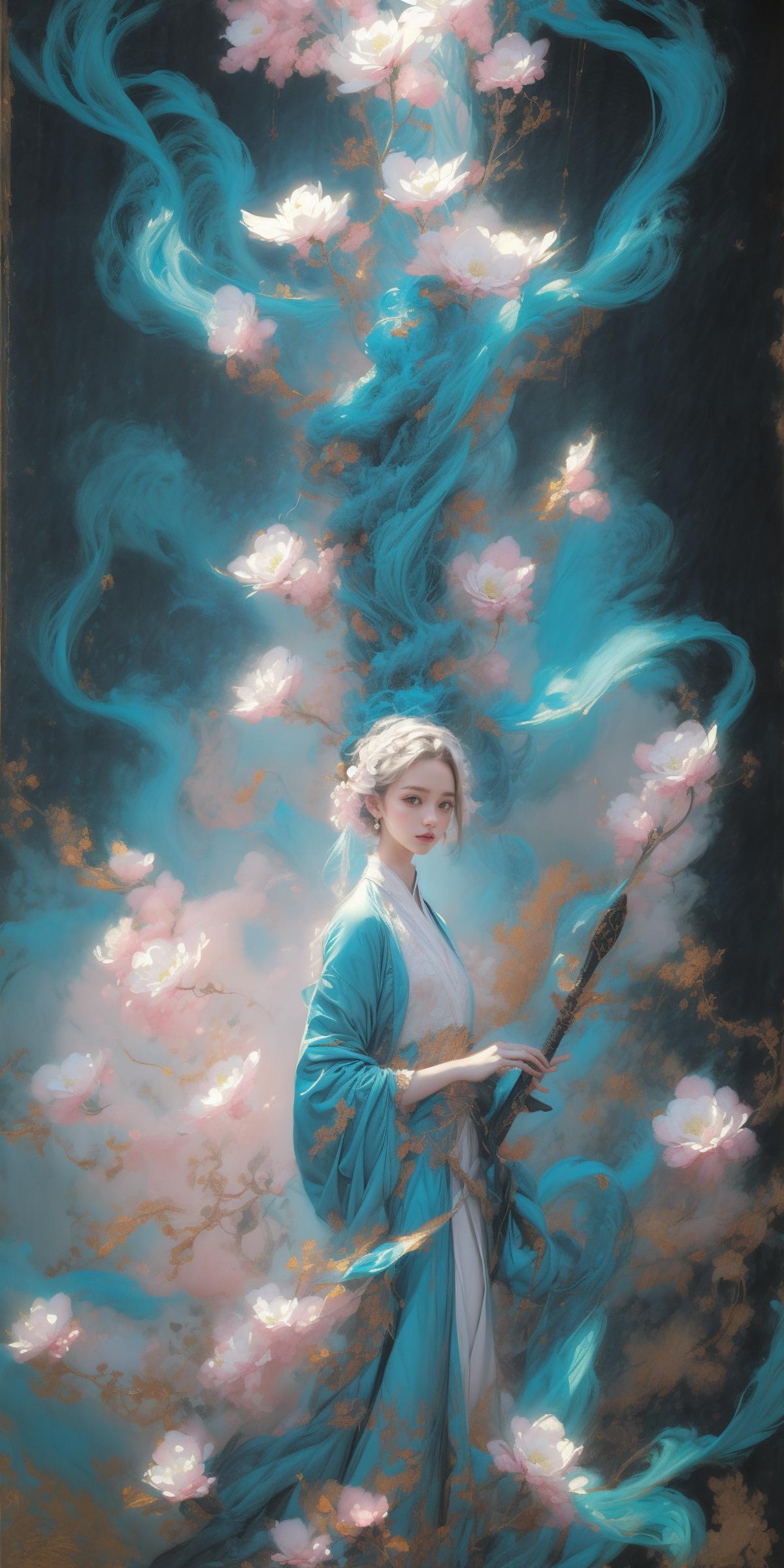 2. For characters: 1girl, solo, realistic, sky, hanfu, moon