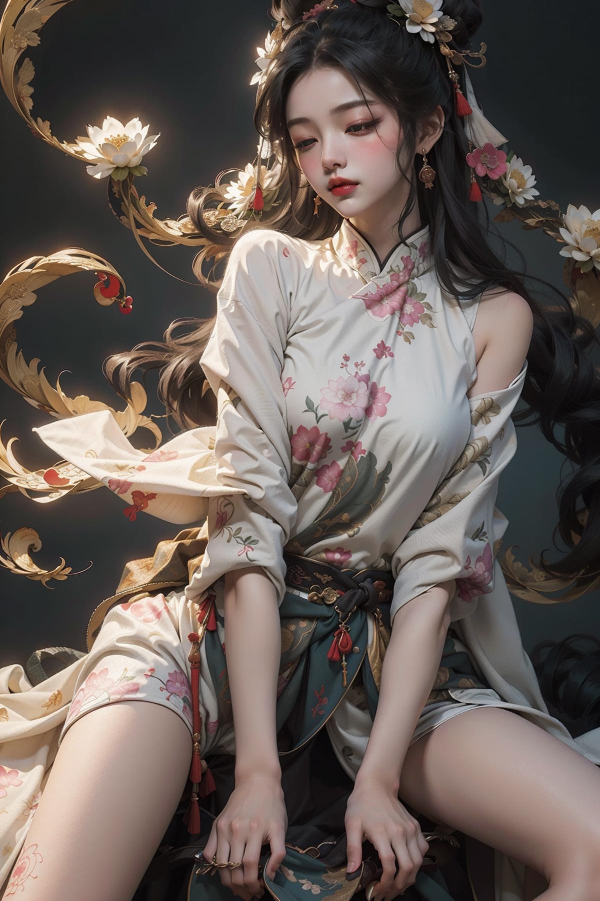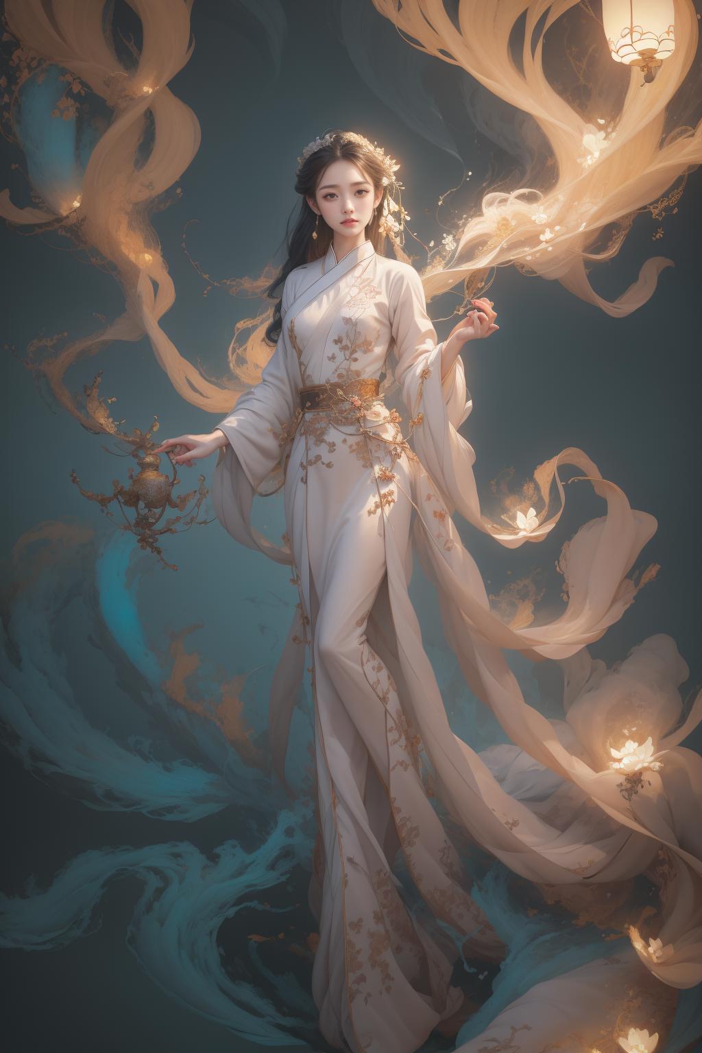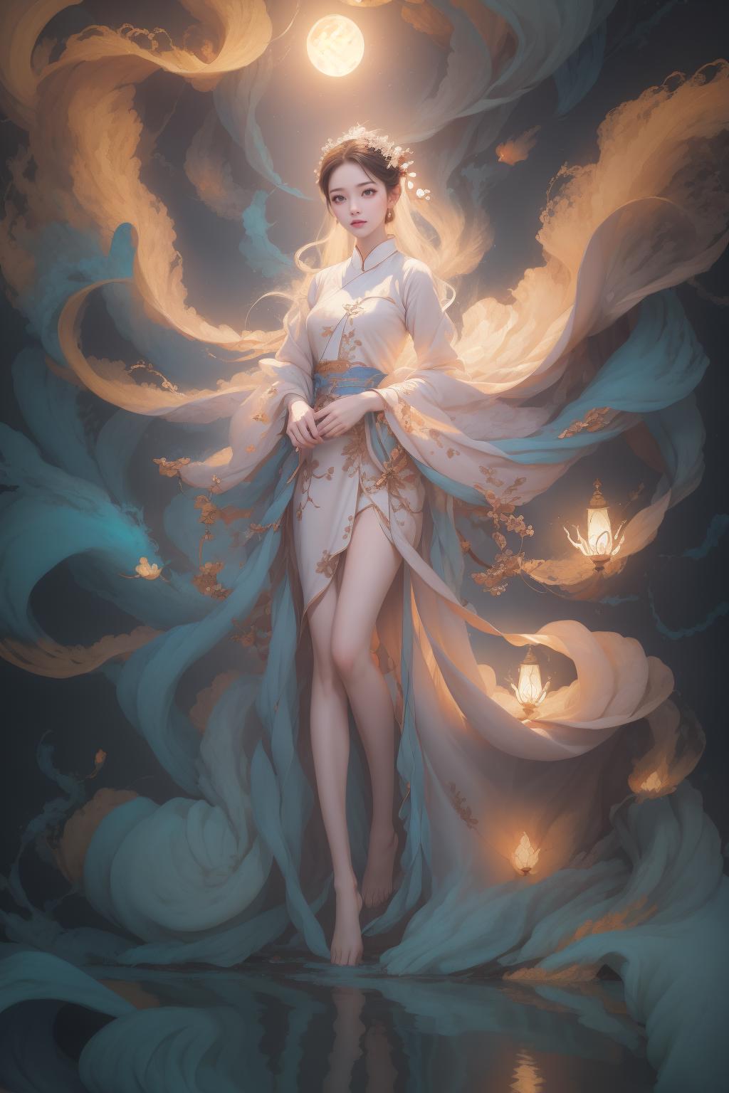 2.用于人物:1girl,solo,realistic,sky,hanfu,moon