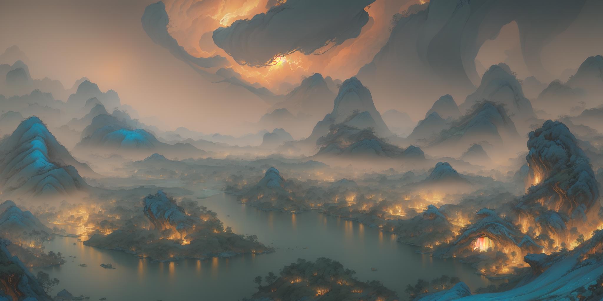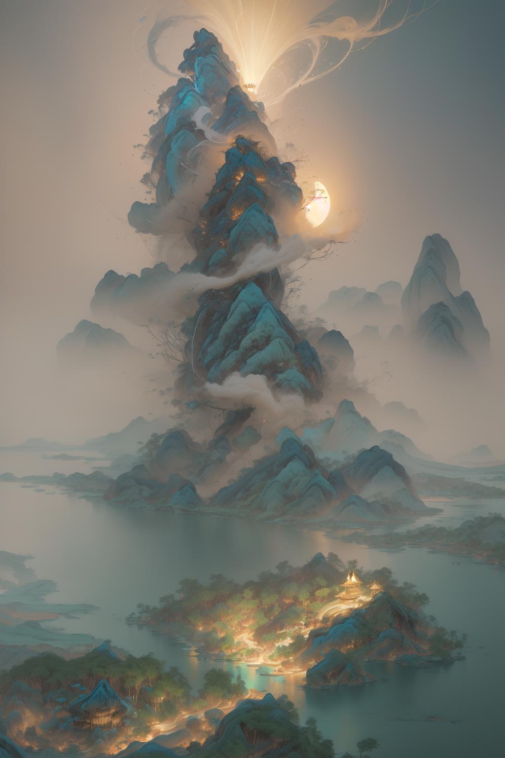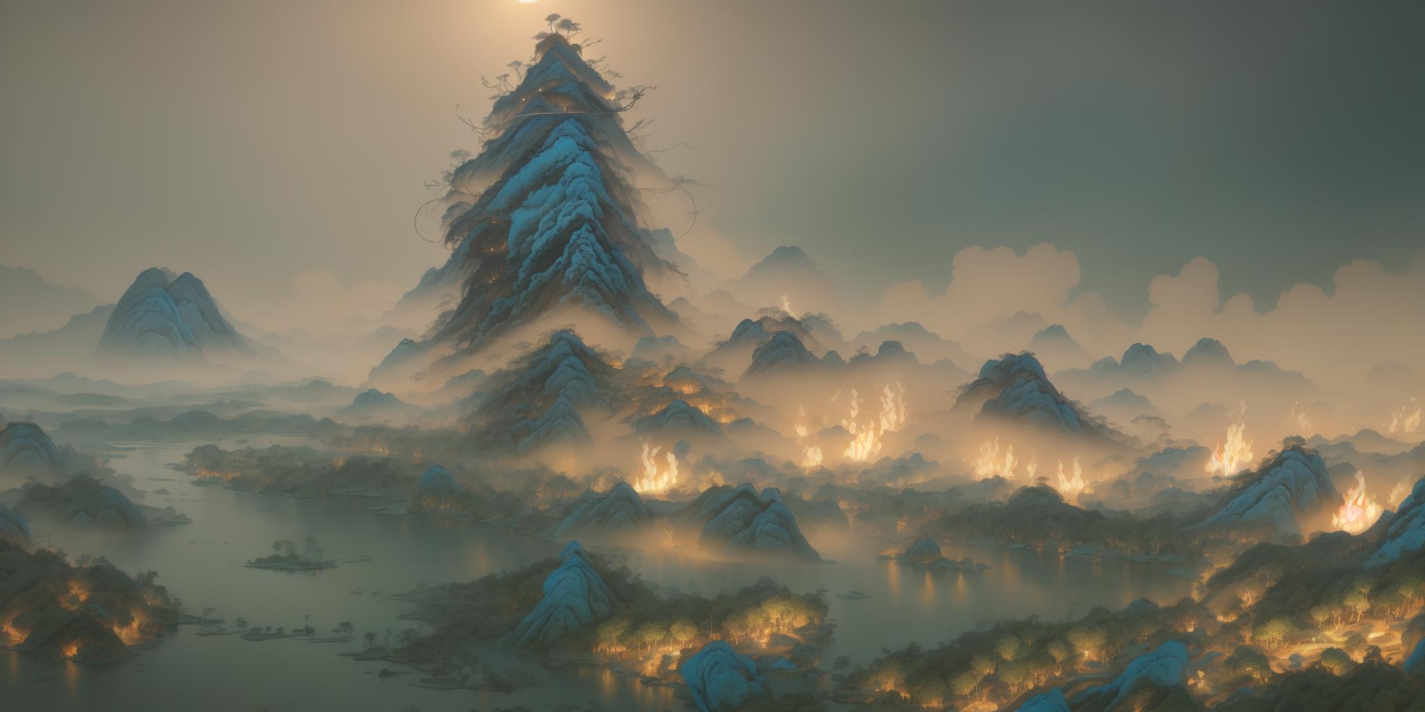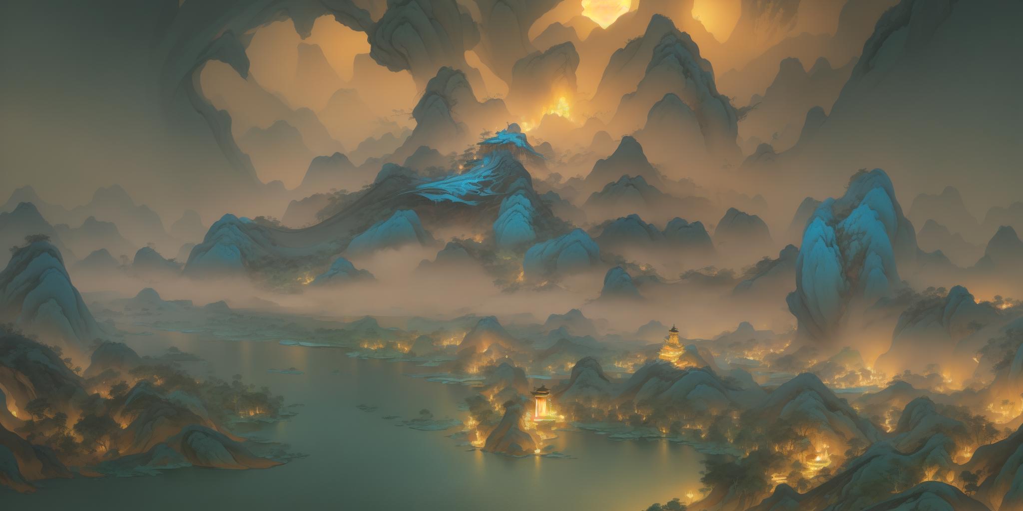 1. For landscape: no humans, mountains, outdoors, scenery, traditional media, landscape, river, birds, water, boat, moon