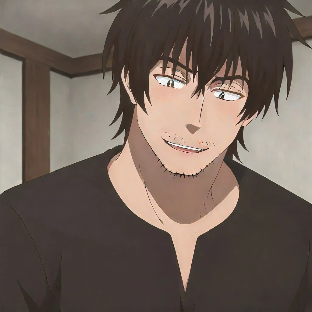 Shinonome, brown hair, brown eyes, stubble, facial hair