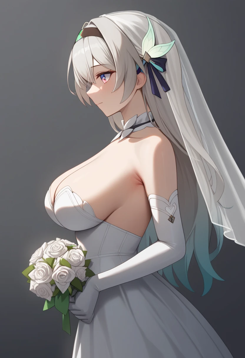 firefly \(honkai: star rail\), 1girl, solo, , dress, long sleeves, hair ornament,,black hairband, medium breastsTrained using 746 images