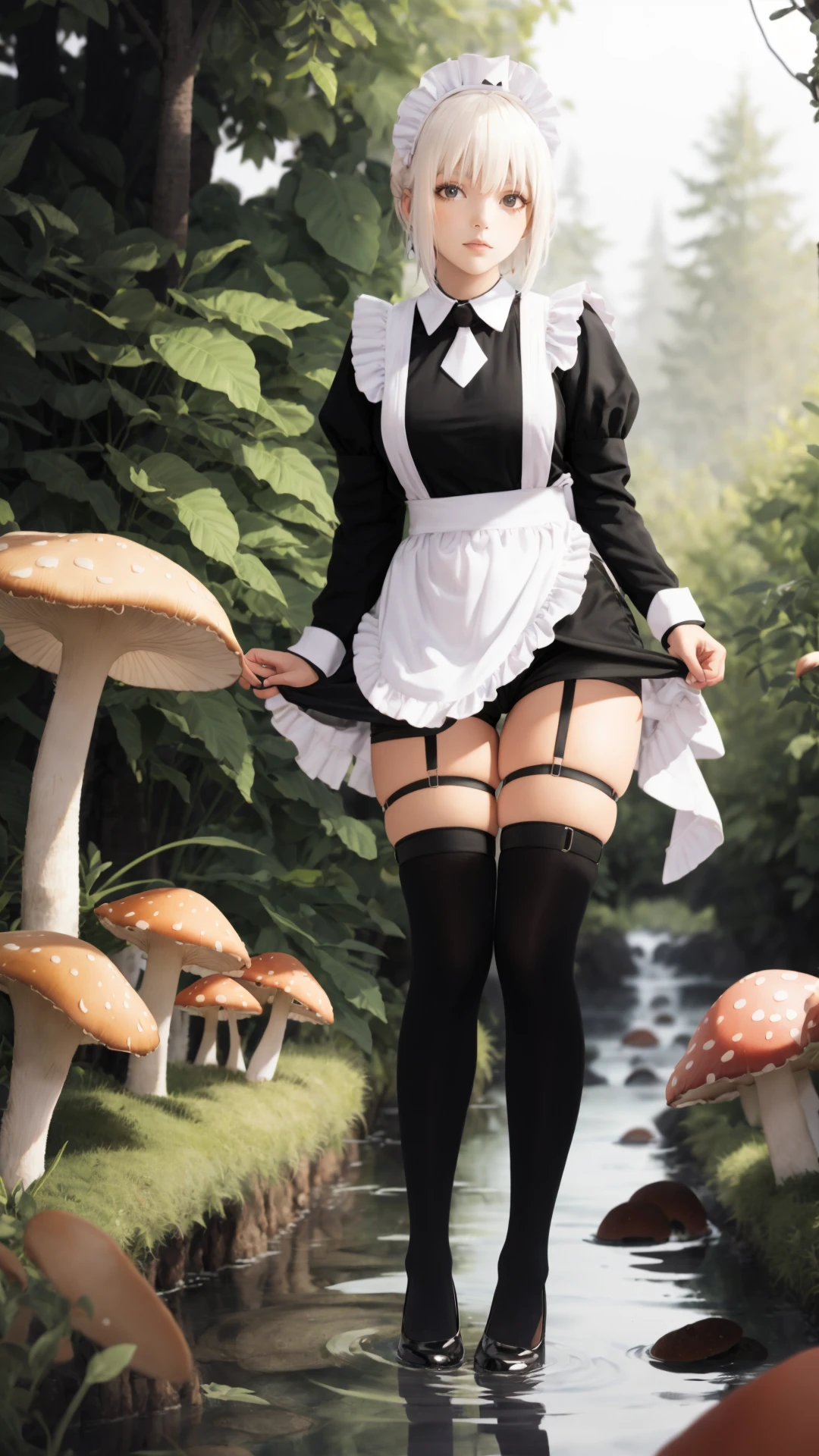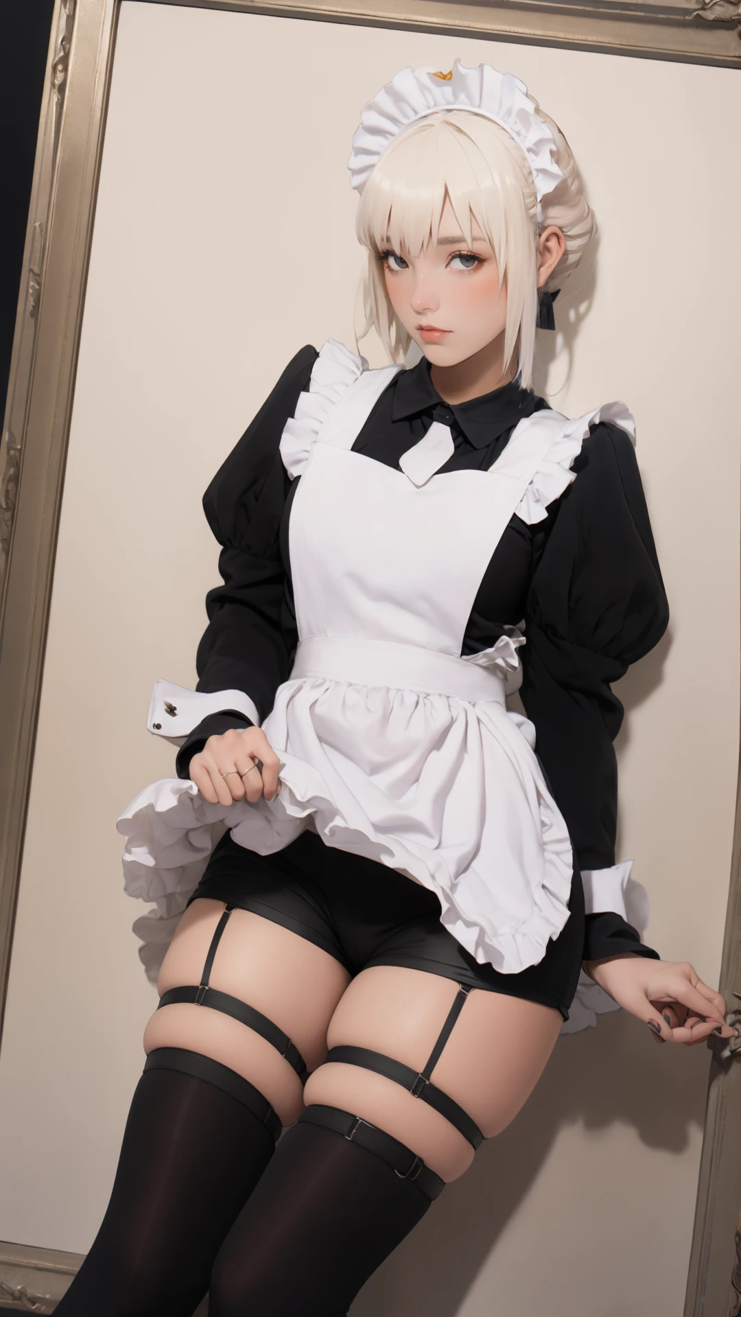 4、触发词为:tutututu,apron,long sleeves,maid,maid apron,puffy sleeves,maid headdress,black shorts,black thighhighs,thigh strap,garter straps,