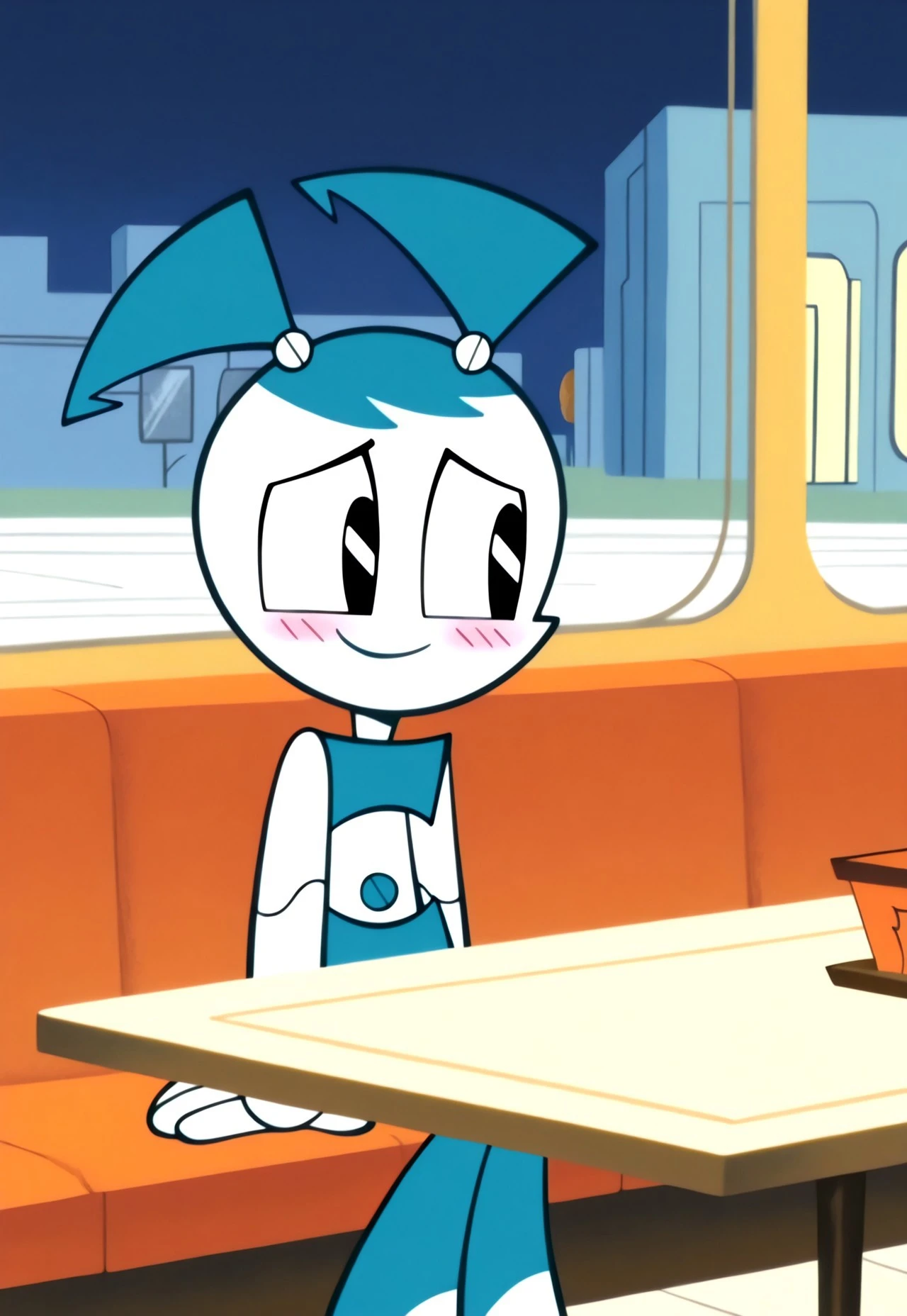 jenny wakeman, xj9, robot, joints, android, robot joints, white skin, blue hair, black eyes