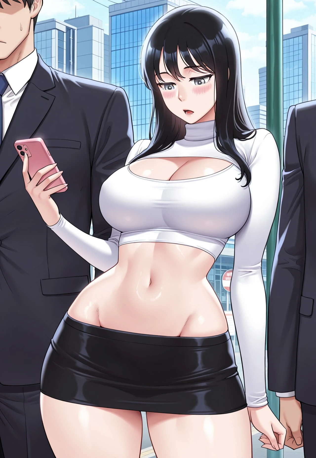 EIO_SoJun, Long hair, black hair, hair down, grey eyes, large breasts,