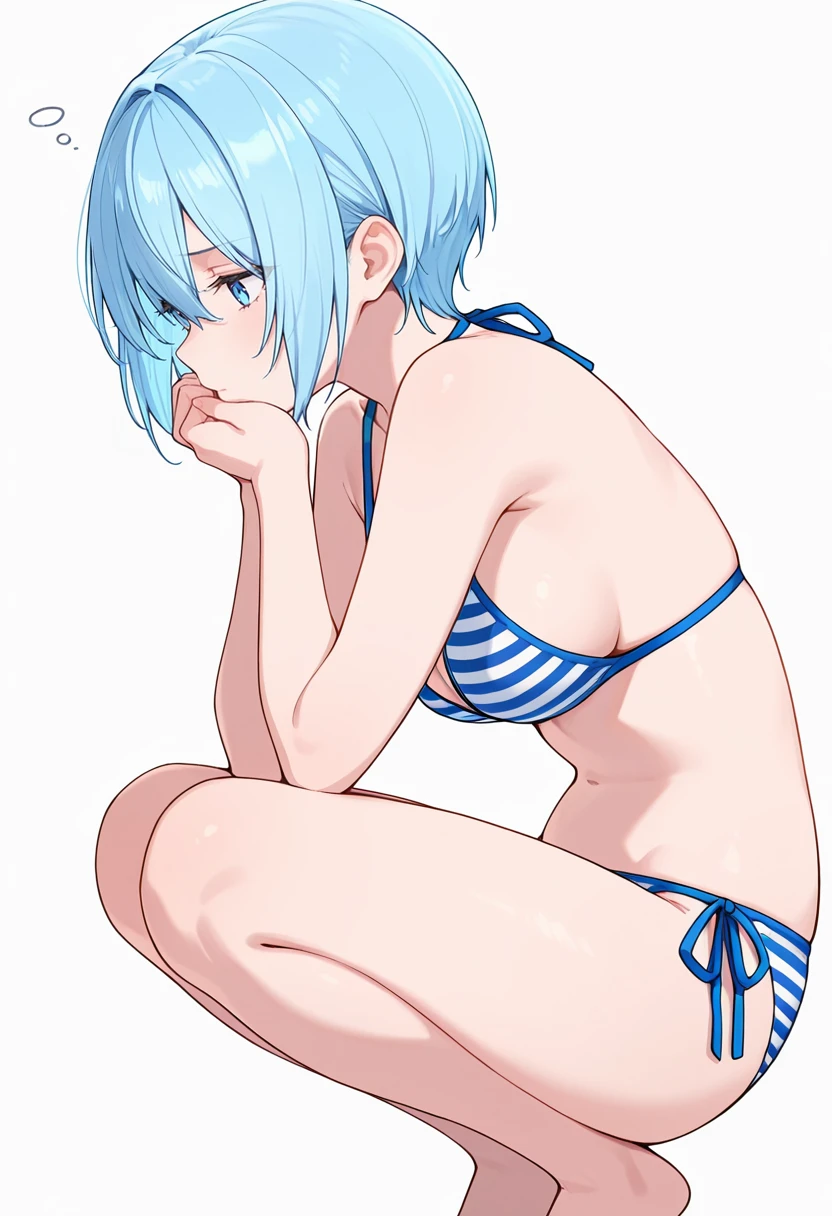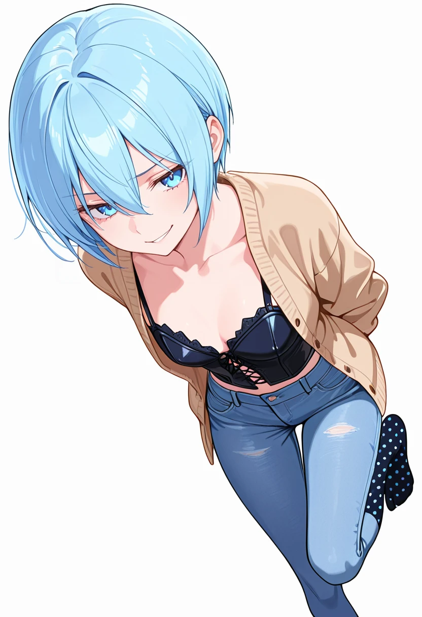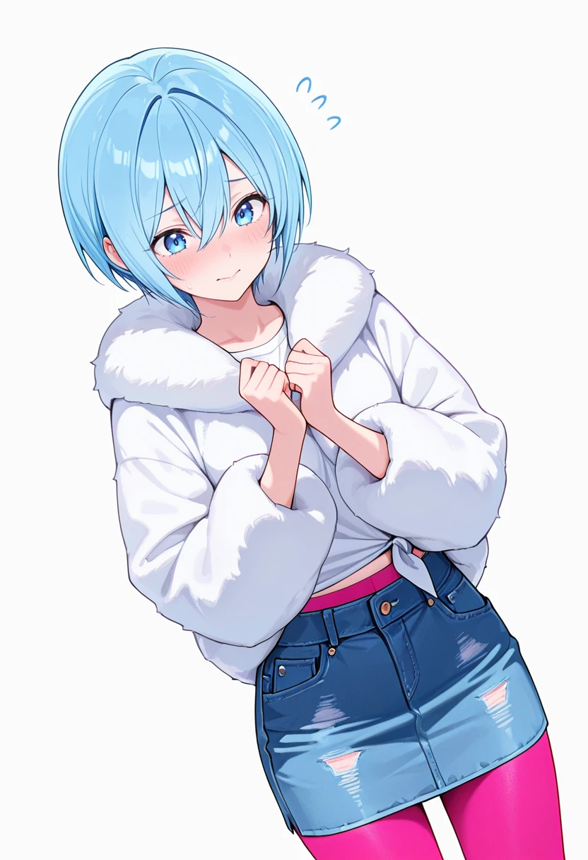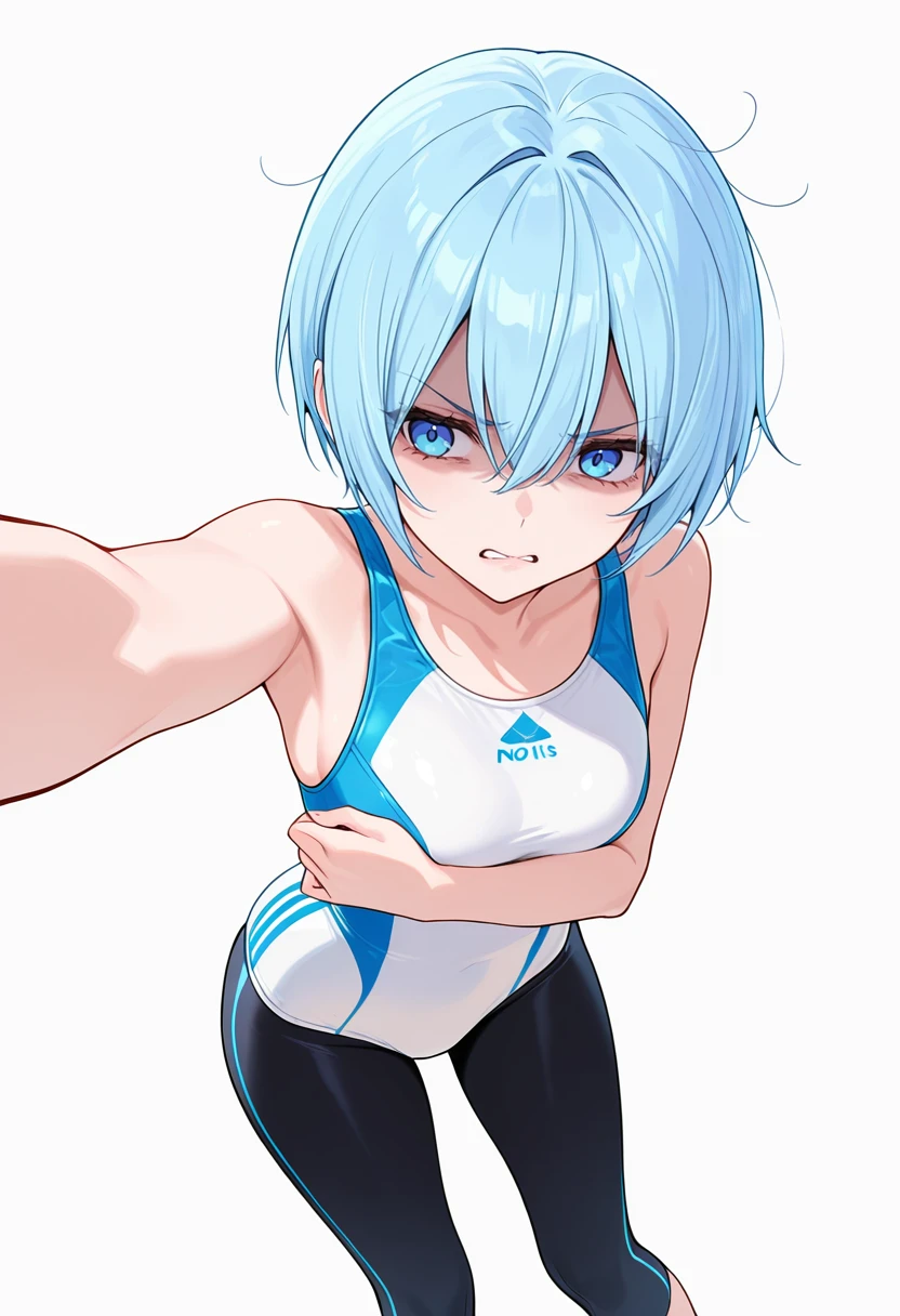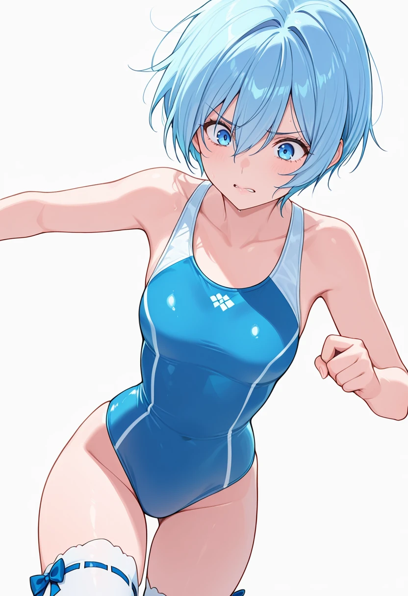 nokiels1_cnr, 1girl, blue hair,short hair,hair between eyes, blue eyes, 👗Default Outfit