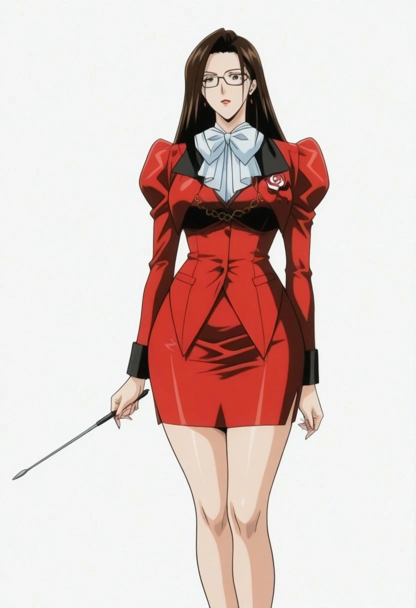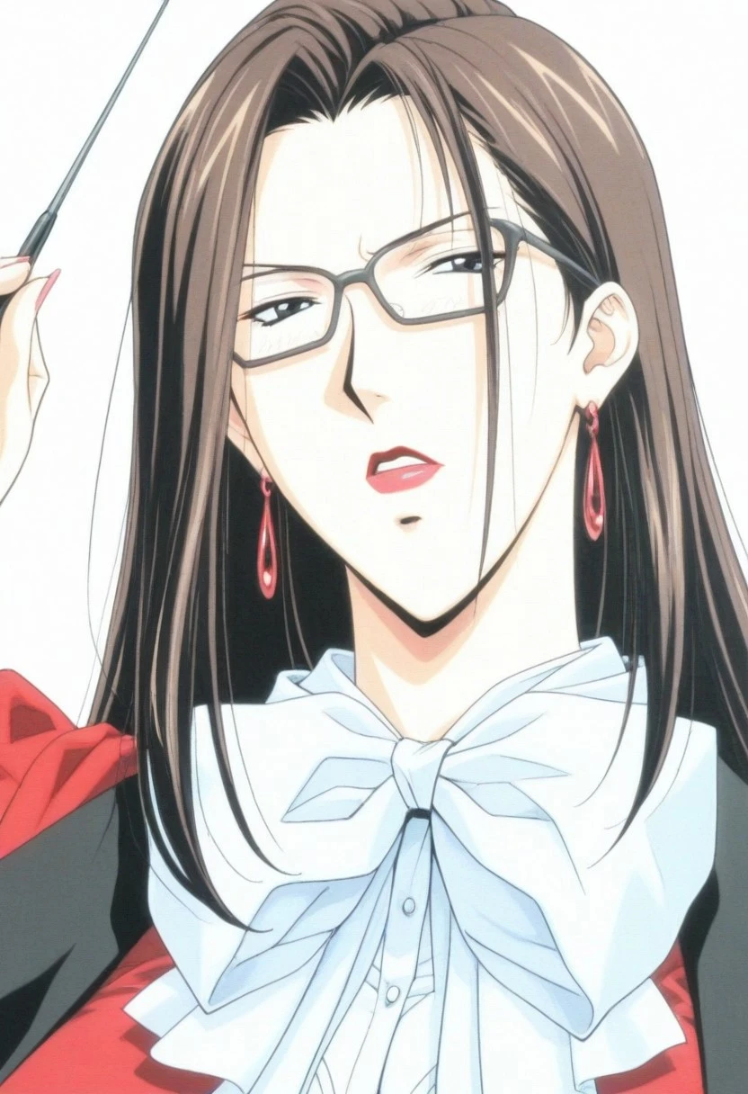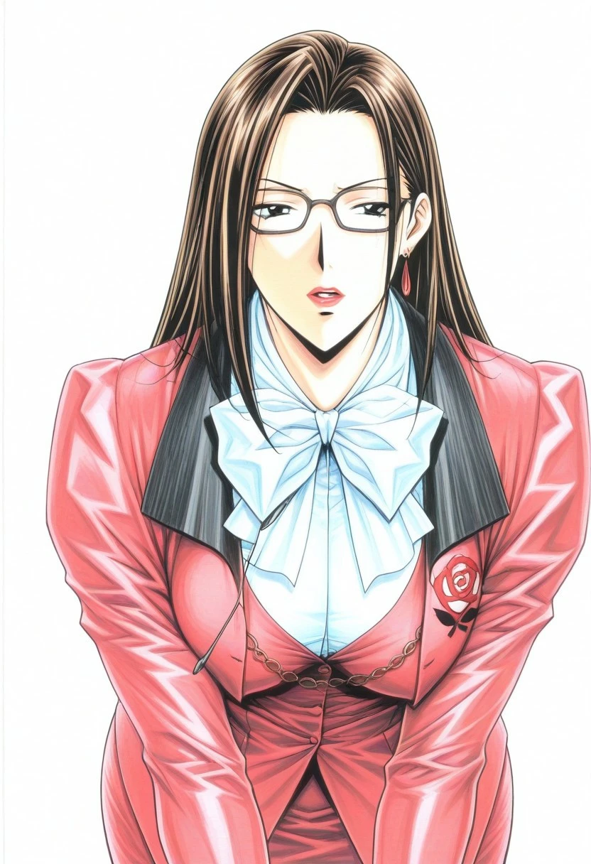 mai-k, solo, anime mature woman, elegant graceful confident assertive woman, adult woman, 29yo, mature female, modest breasts, anime adult face, realistic adult woman figure,strong hourglass shape, slim yet voluptuous curvy body, extremely curvy and voluptuous mature woman body, tall and well-proportioned figure, glasses, long straight black hair, length-bottom shoulder hair, long single sidelock, airy to underchest, lipstick, red ring earrings, g-taste style, inspiration g-taste artstyle,