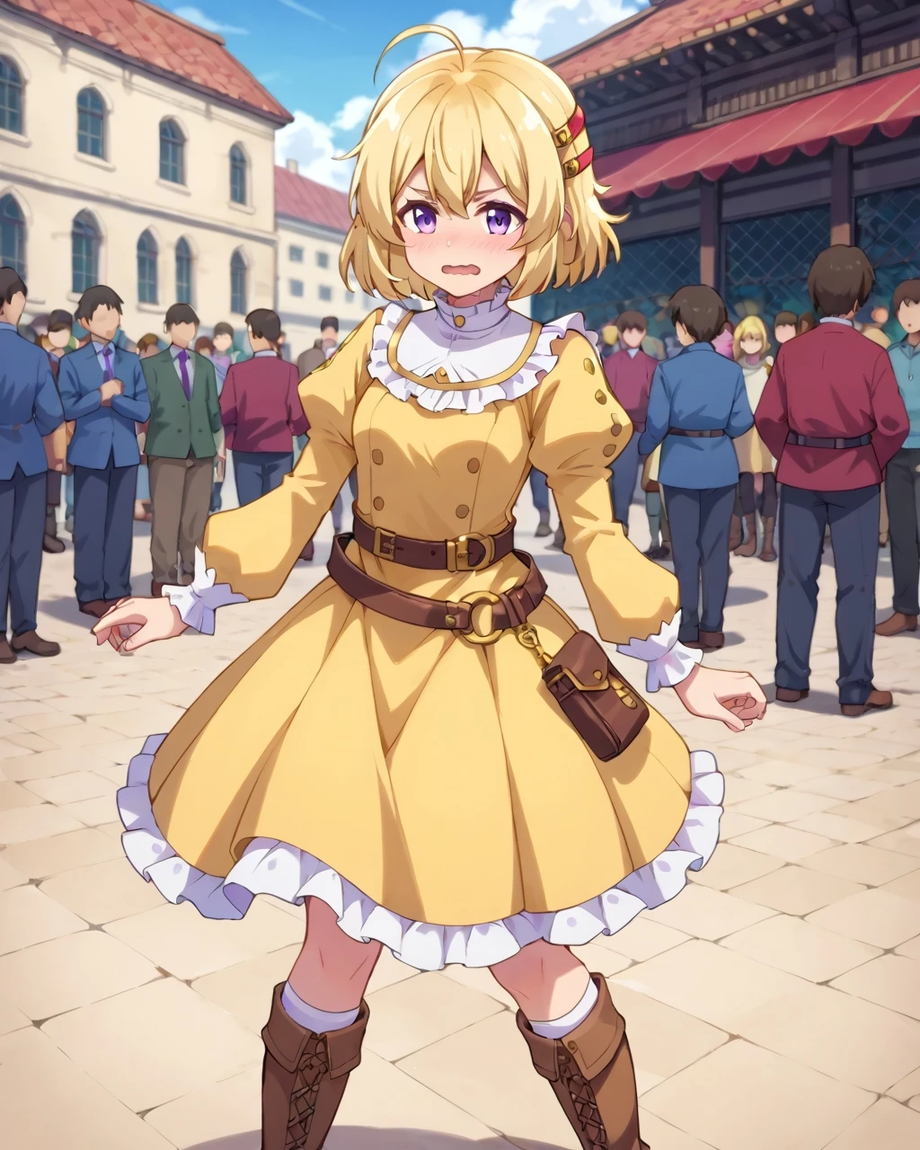 Selen Hemein, selen, blonde hair, purple eyes, short hair, , , 1girl, solo