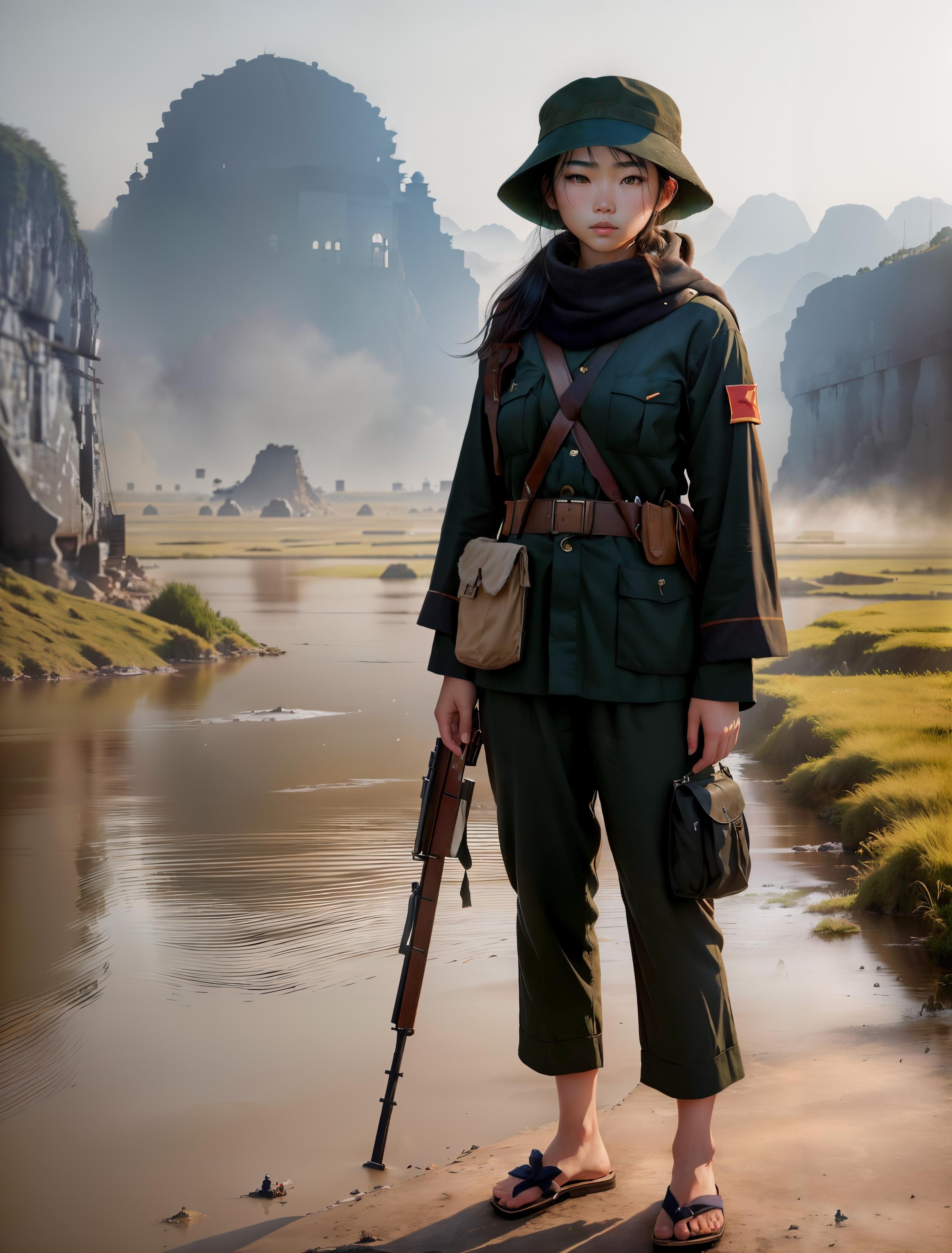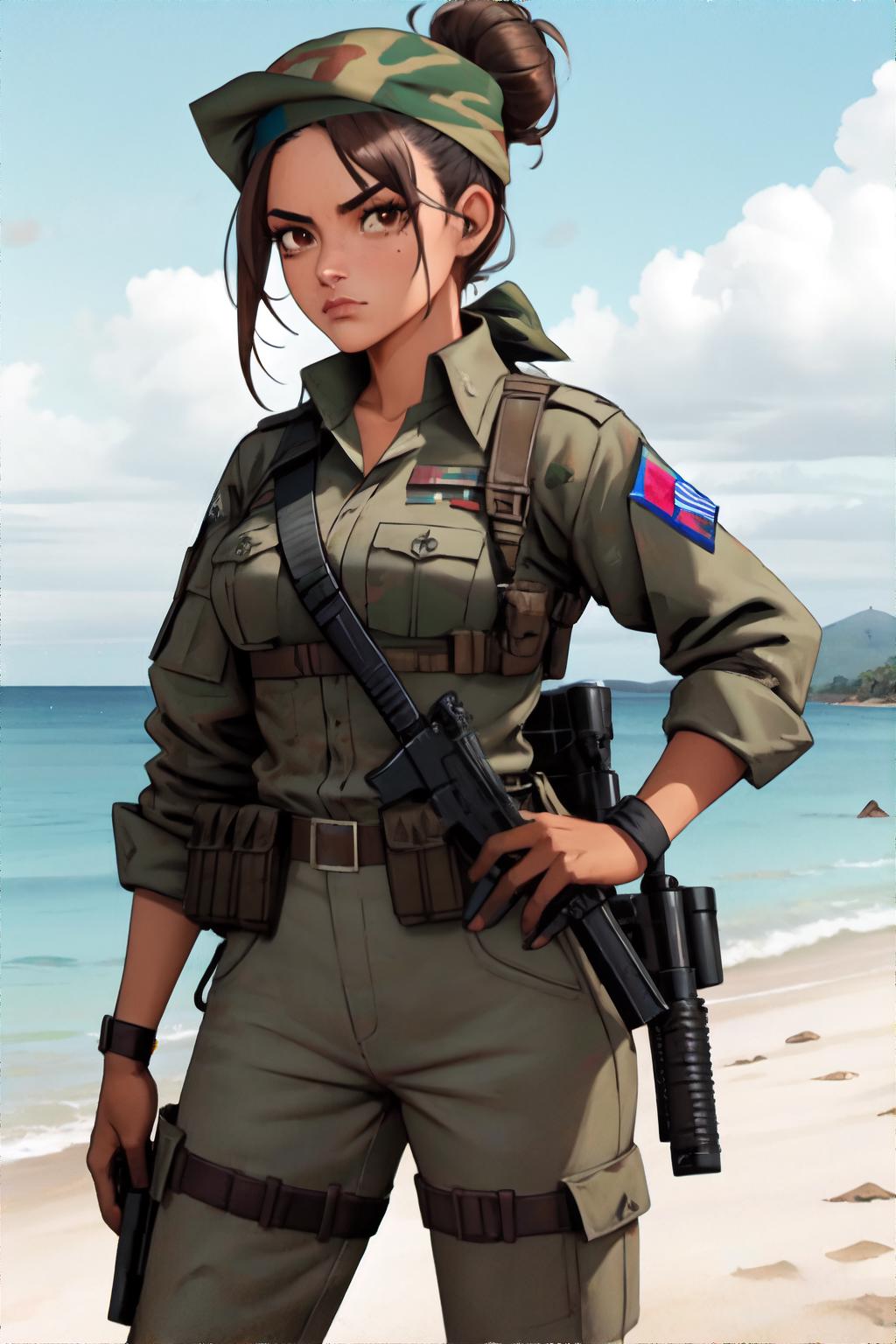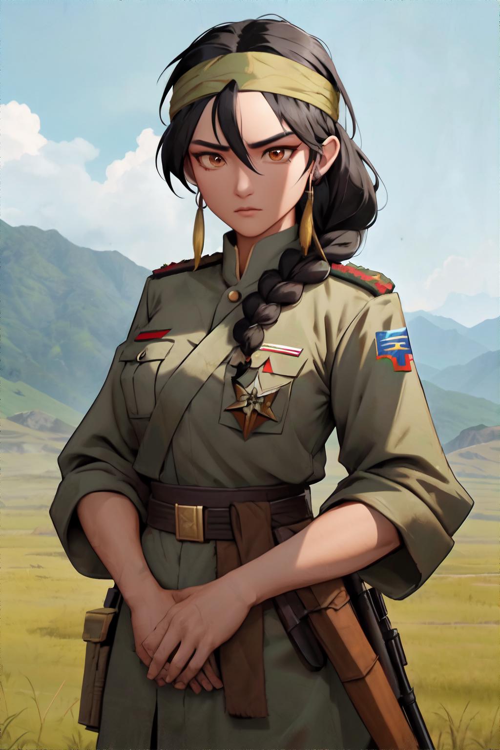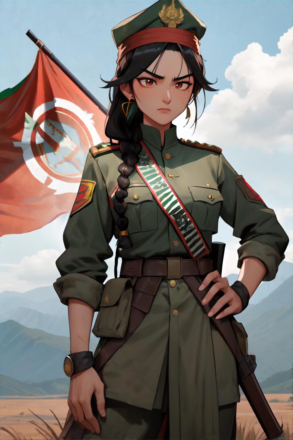 This is the 'Female Guerilla Fighter' Try it out using my suggested prompts, along with 'revAnimated' but I encourage you to play around with other Checkpoints. I recommend using dynamic prompts and installing ControlNet. Don't forget to download the tile-resample model specifically for ControlNet and combine it with Ultimate SD upscale with 4x Ultrasharp.