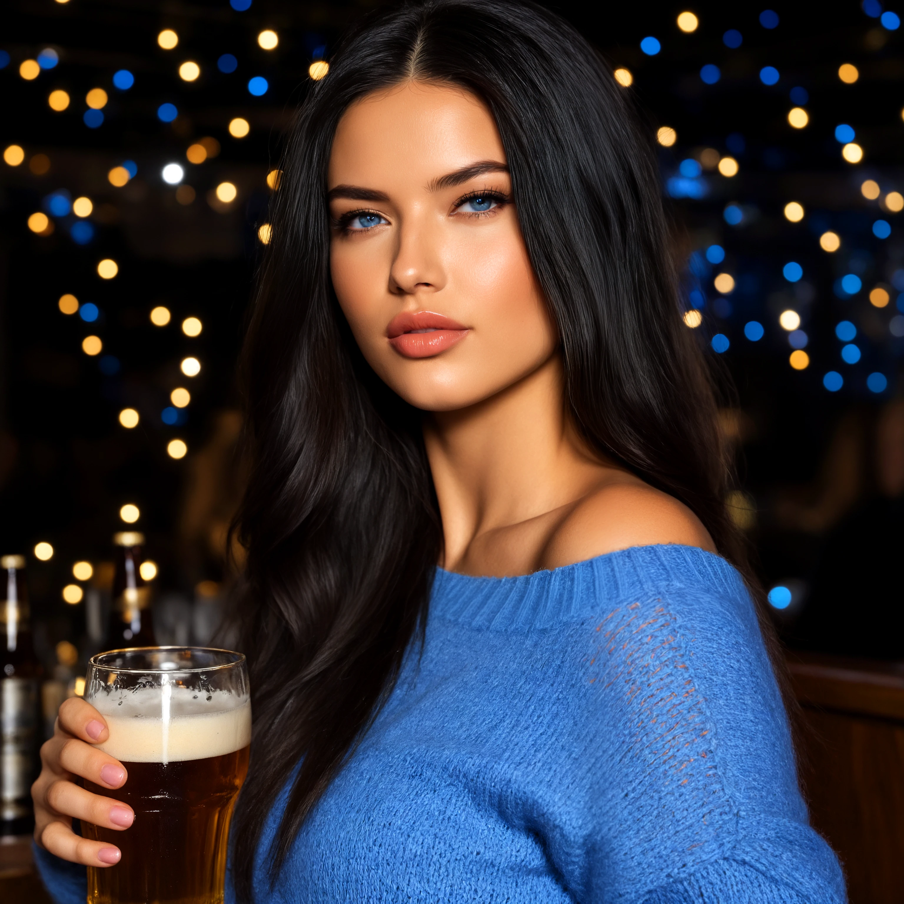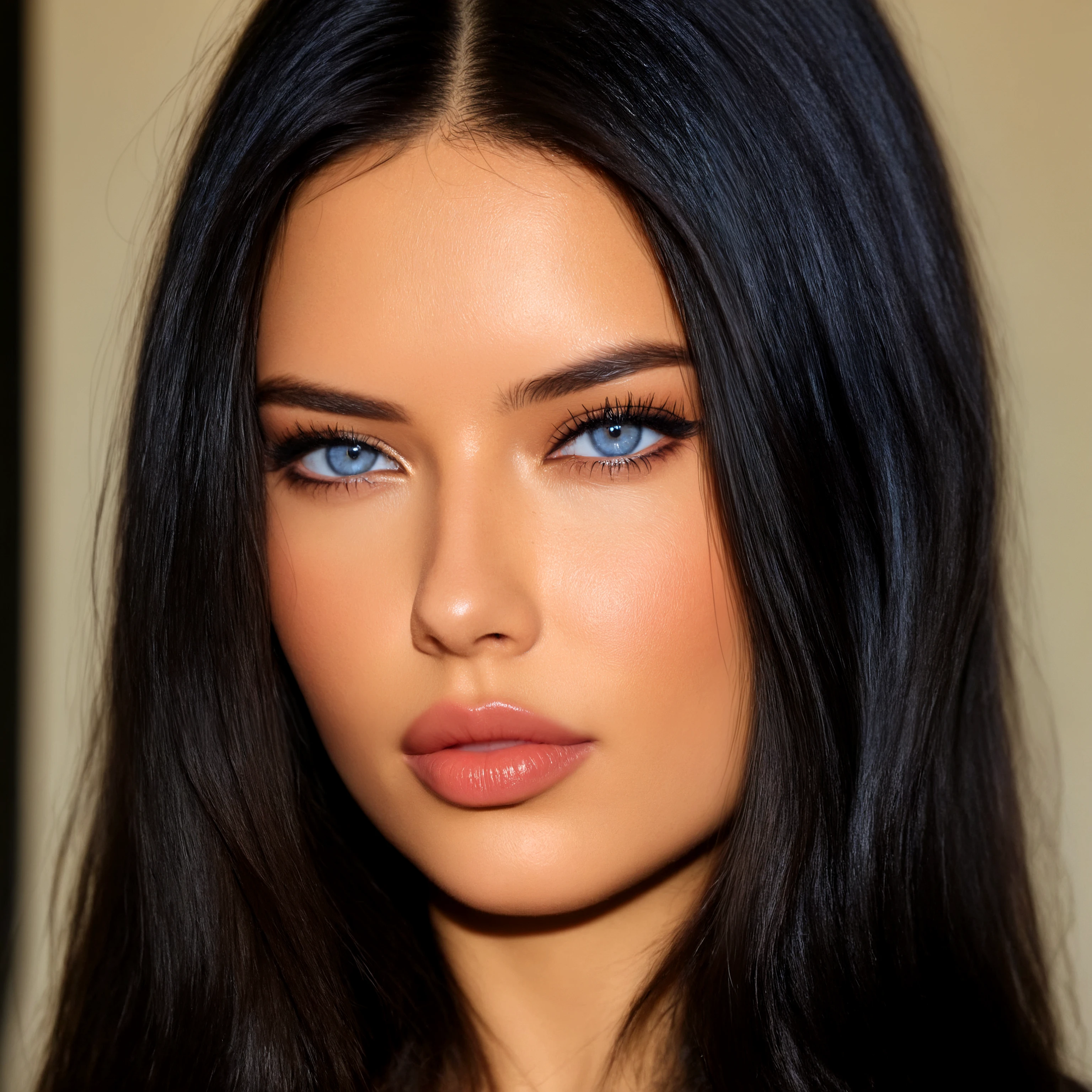 realistic, kms_AdrianaL, 1girl, nose, plump lips, thick lips, eyelashes, makeup, blue eyes, long hair, black hair, forehead,