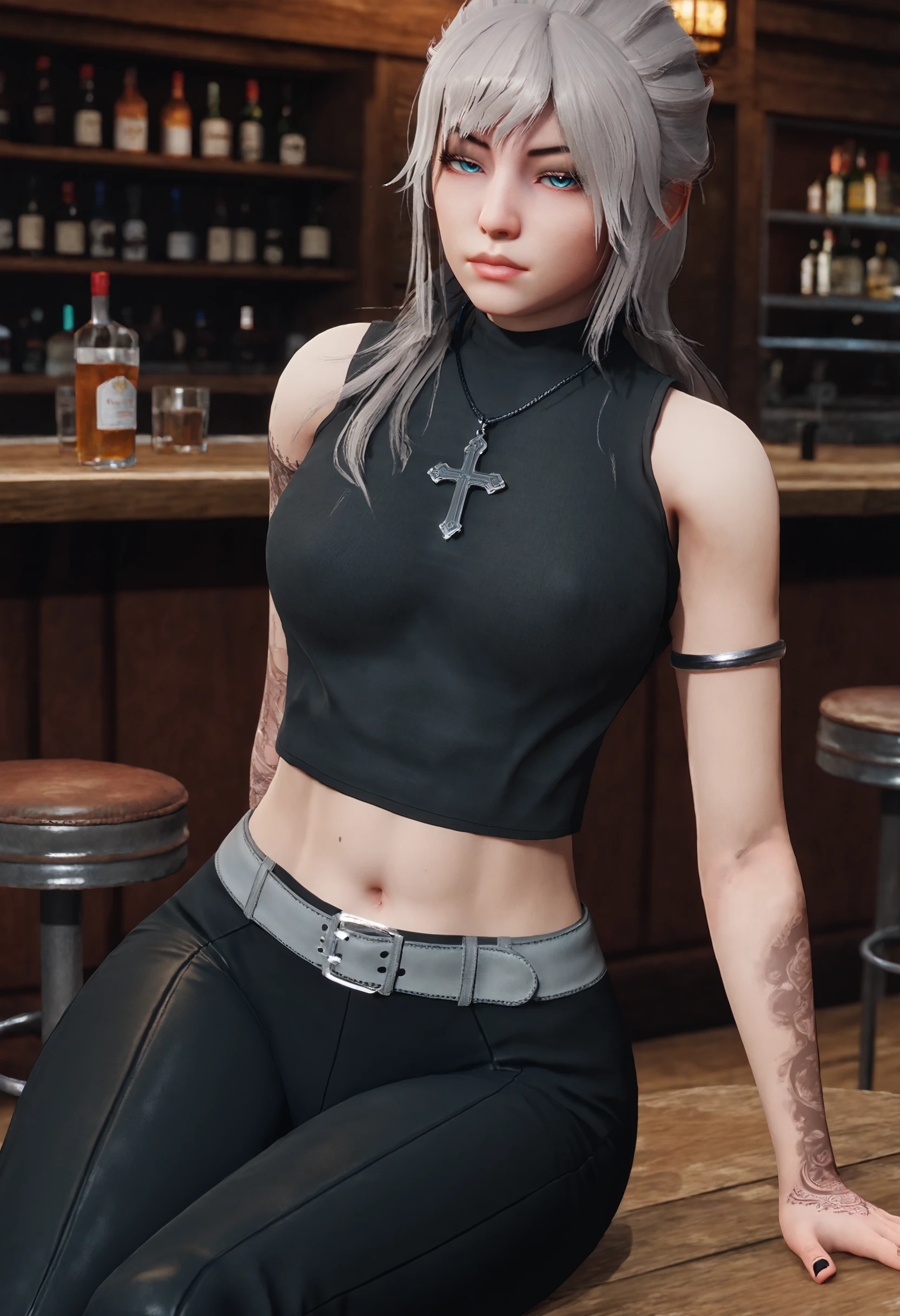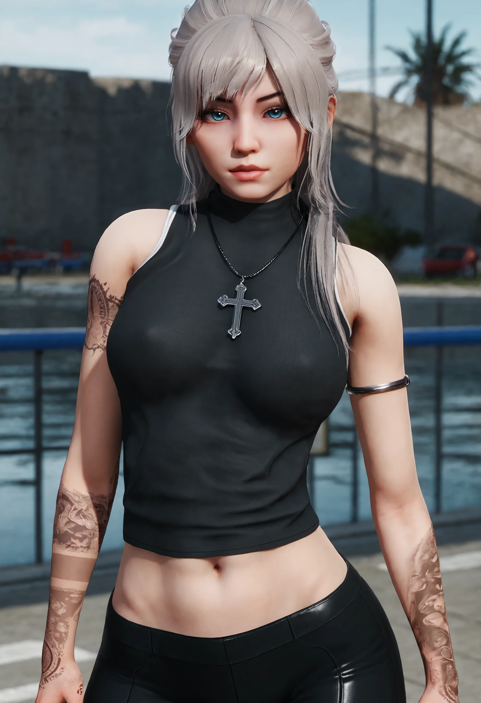 Alex from Eternum. Use at .8-.9 strength. This one frustrated me quite a bit and took longer than I wanted. I still feel like it needs improvement but I am content with it for the moment. Her tattoos can come through well... sometimes. Enjoy!