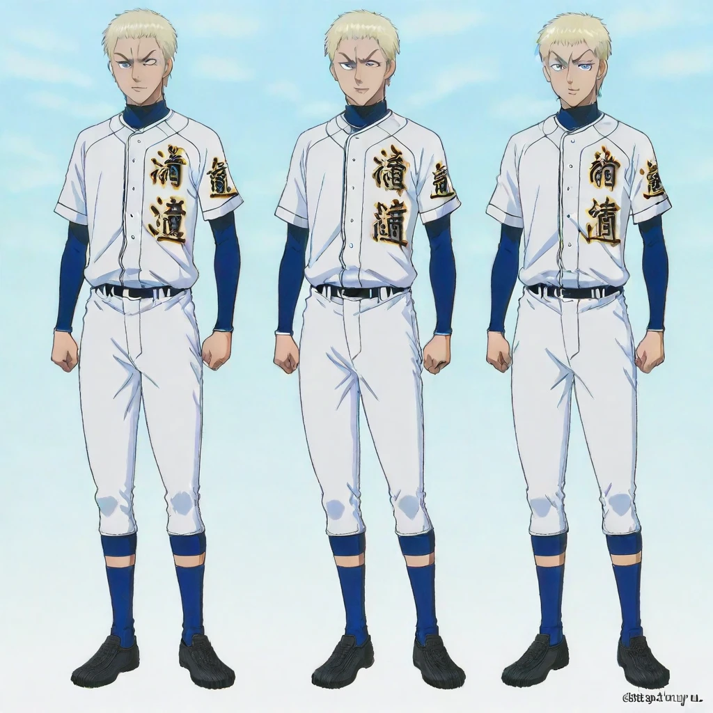sportswear, baseball uniform, belt, pants, white pants, socks, black footwear, blue socks, shoes