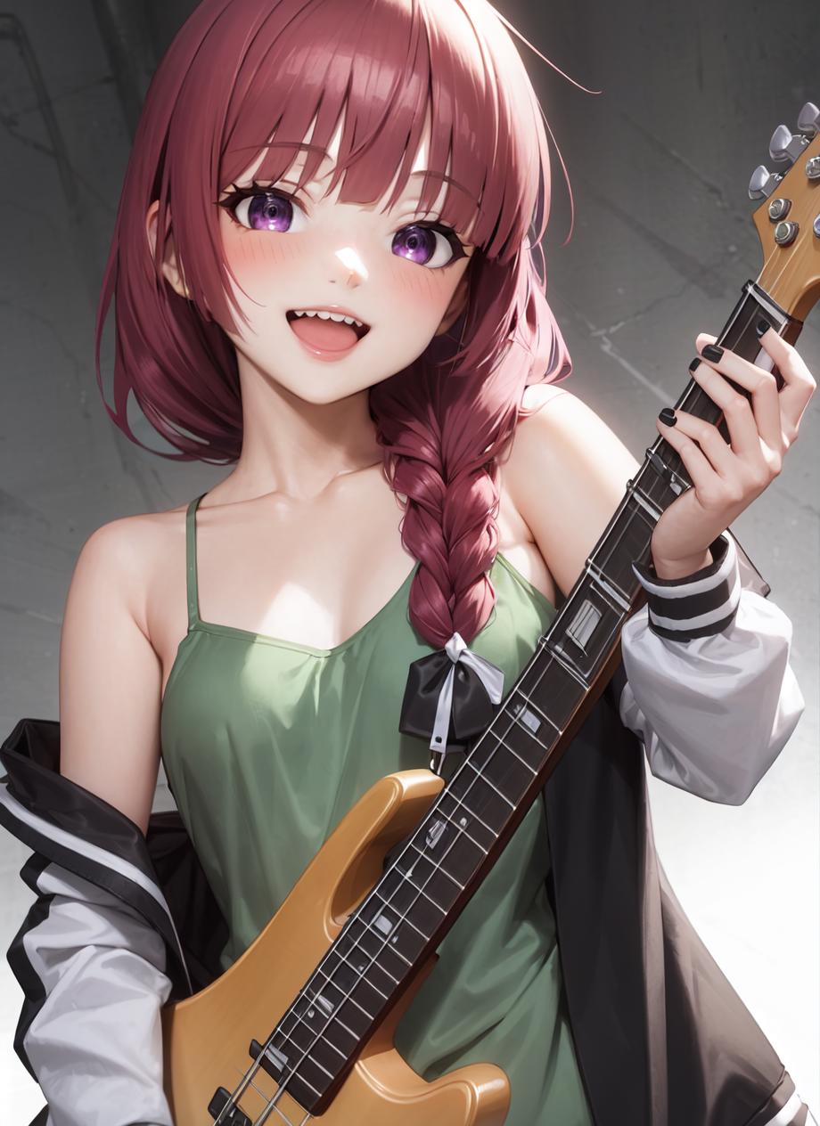 add ", , off shoulder" to expose more her arms and shoulders.