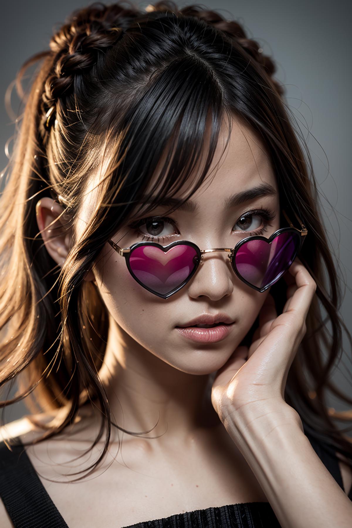 你可以尝试使用tag描述眼镜的类型,例如heart-shaped eyewear