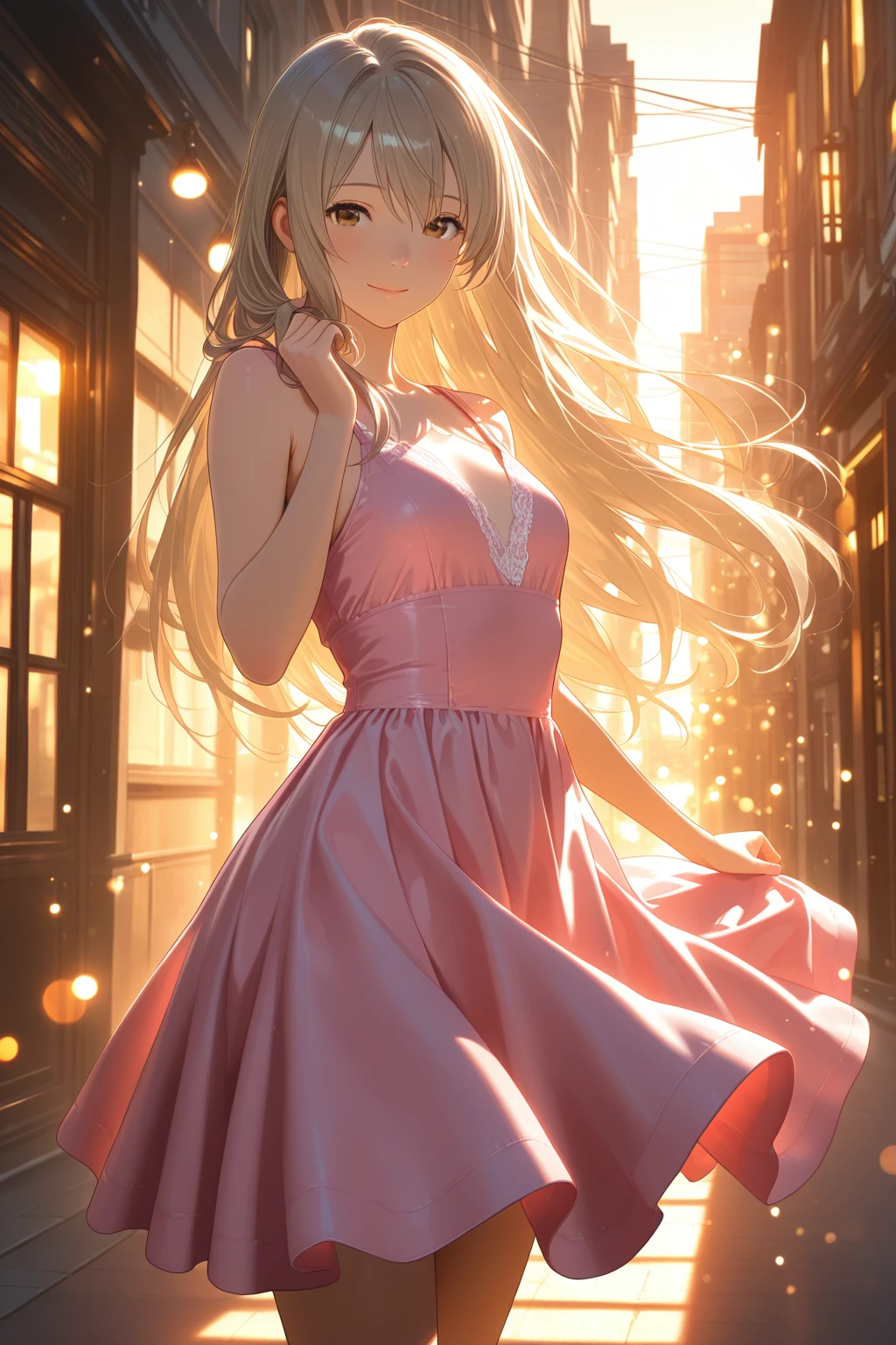 1girl, solo, long hair, straight hair, light brown hair, light brown eyes, small breasts