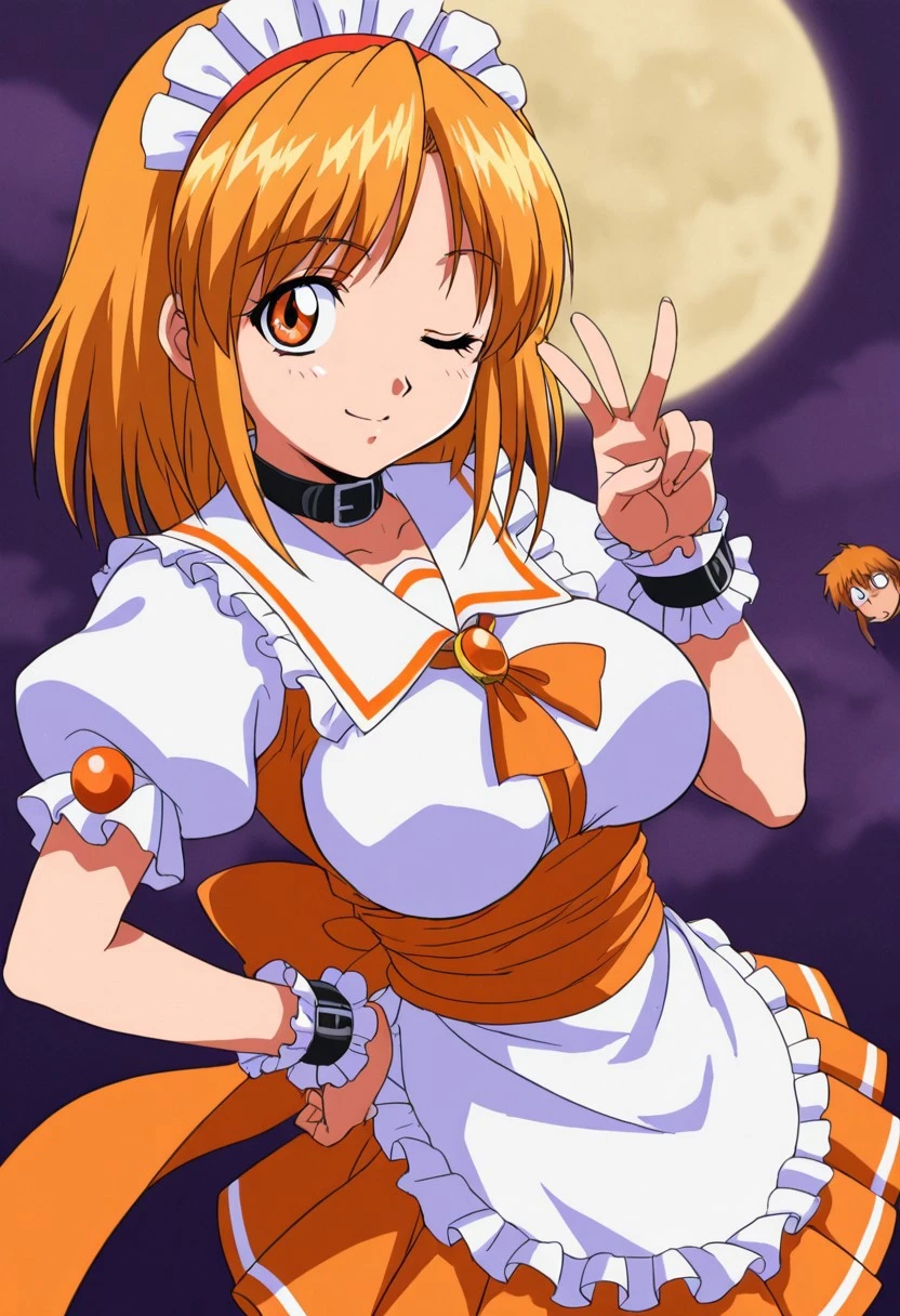 Trigger: CericaGotou, Short hair, light orange hair, orange eyes, large breasts,