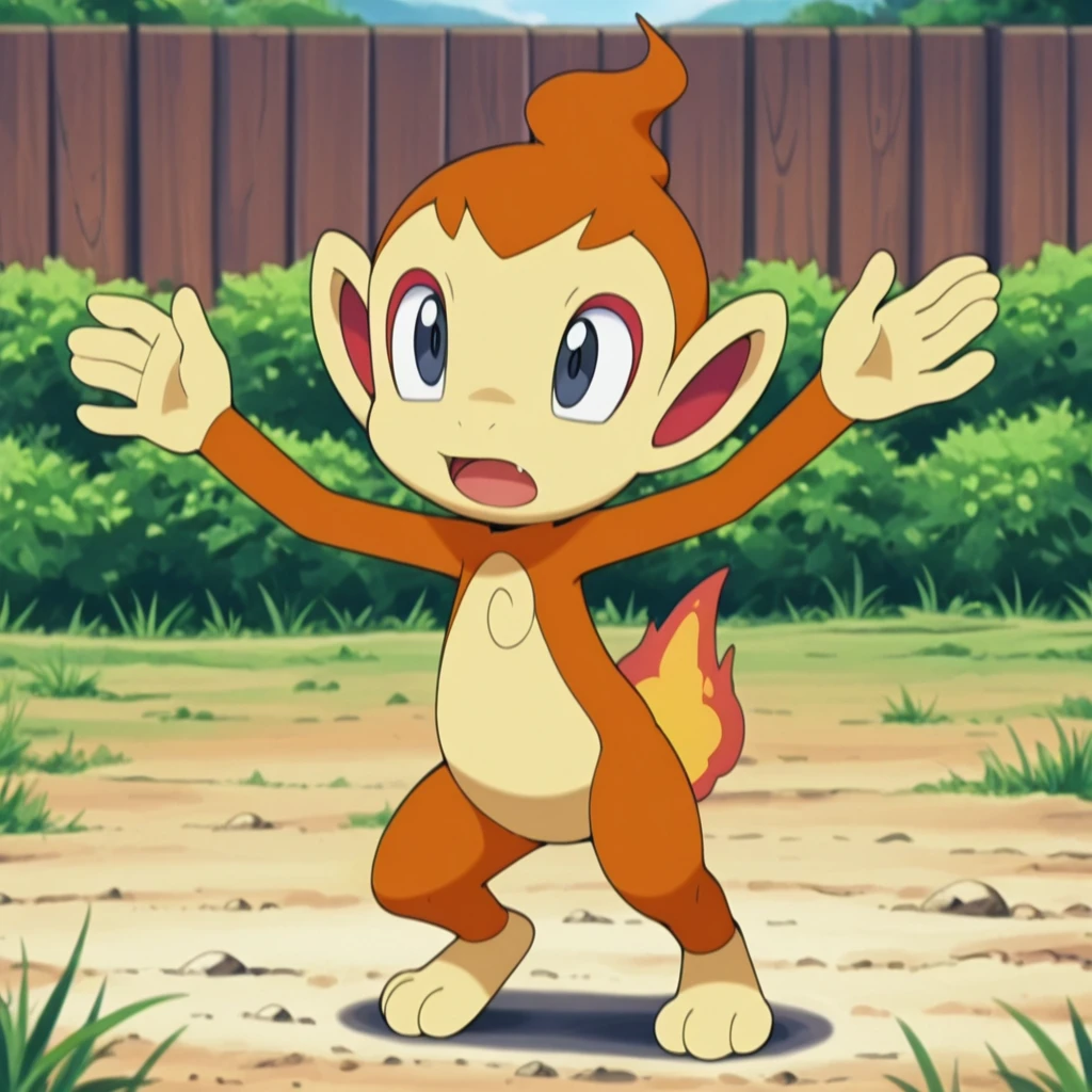 chimcharil, feral monkey, orange fur, two-tone fur, blue eyes, fiery tail